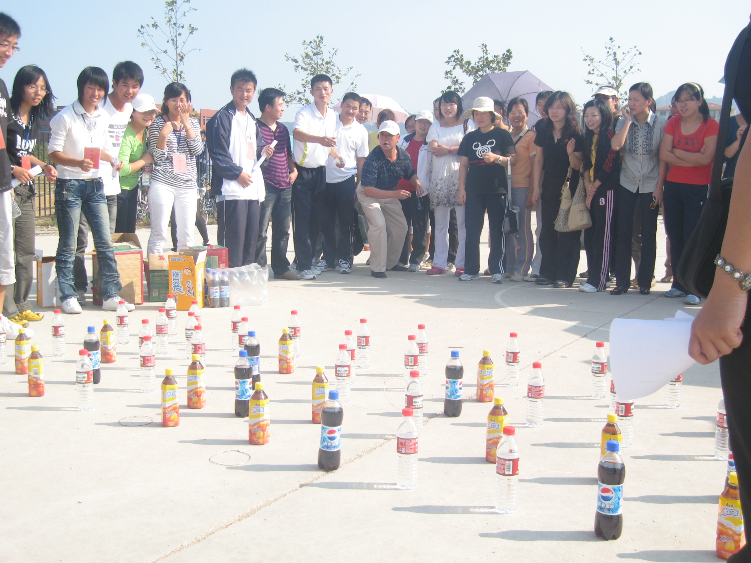 本次活动分为个人项目和集体项目两个环节。个人项目有套圈、掷飞镖、足球射准、袋鼠夹球、花样跳绳、夹乒乓球、独眼投篮、立定跳远、夹包掷远、自行车慢骑和呼啦圈等11个小项目。老师们在每个项目中都积极主动,表现出了极大的热情。集体项目包括投沙包、跳大绳、孤岛求生、投石问路、钓鱼接力、乒乓球接力、步调一致等7个小项目。在集体项目中,老师们充分发挥团结友爱、奋勇争先的精神,活动进行的激烈有序。本次活动对成绩突出的老师给予一定奖励。