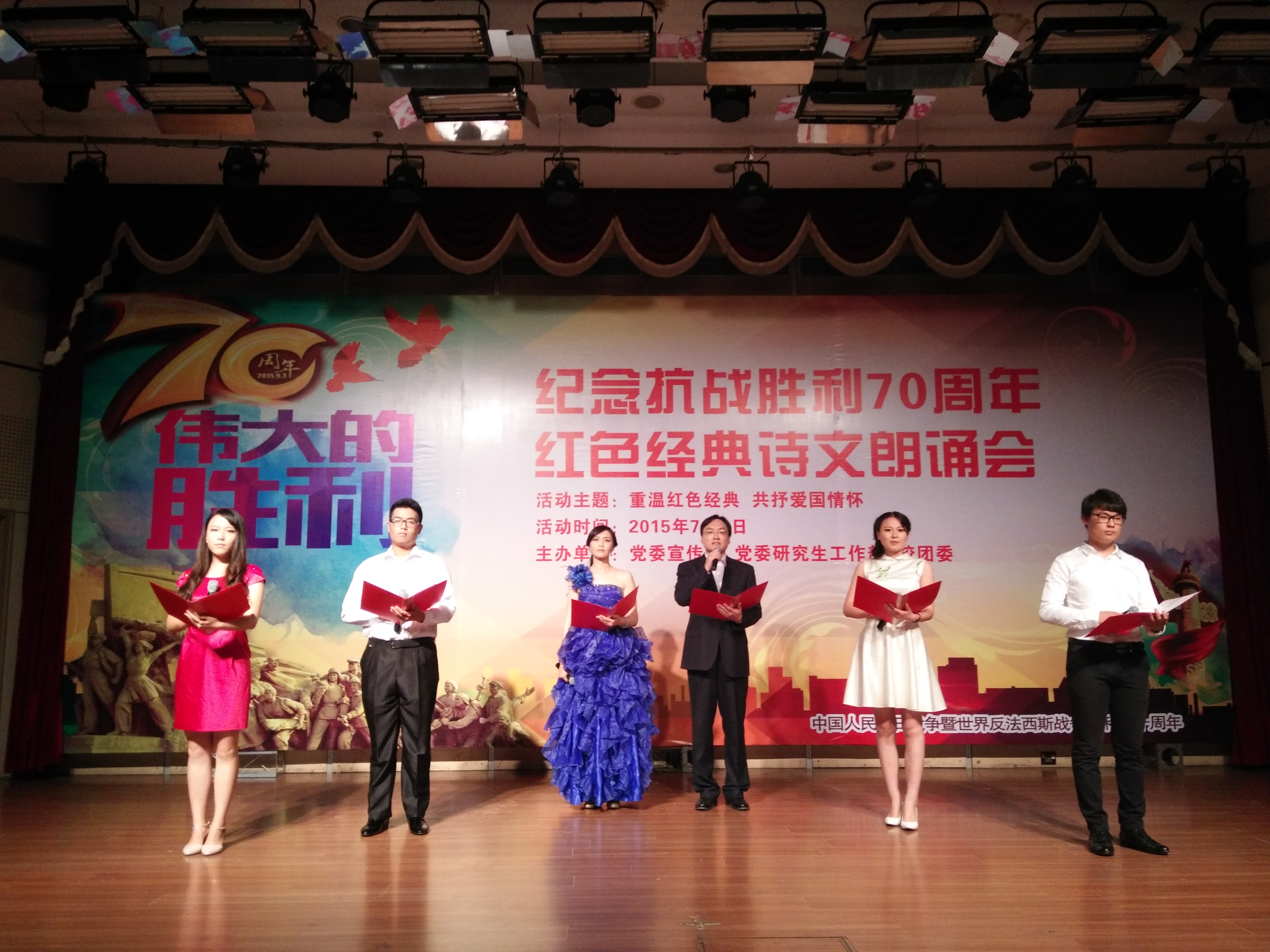 本次大赛由宣传部、研究生工作部、校团委联合主办,来自公司的18个代表队参加了本次活动。公司代表队由教师别俊玲、陈超、员工毛筱敏、袁媛、蓝信义、朱辉联合组成。他们以包涵深情的朗诵、富有感染力的舞台表演,表达了浓烈的爱国情怀,博得现场观众的热烈掌声。最终,公司代表队以并列第三名的成绩荣获本次朗诵会的一等奖。通讯员:战寿娟