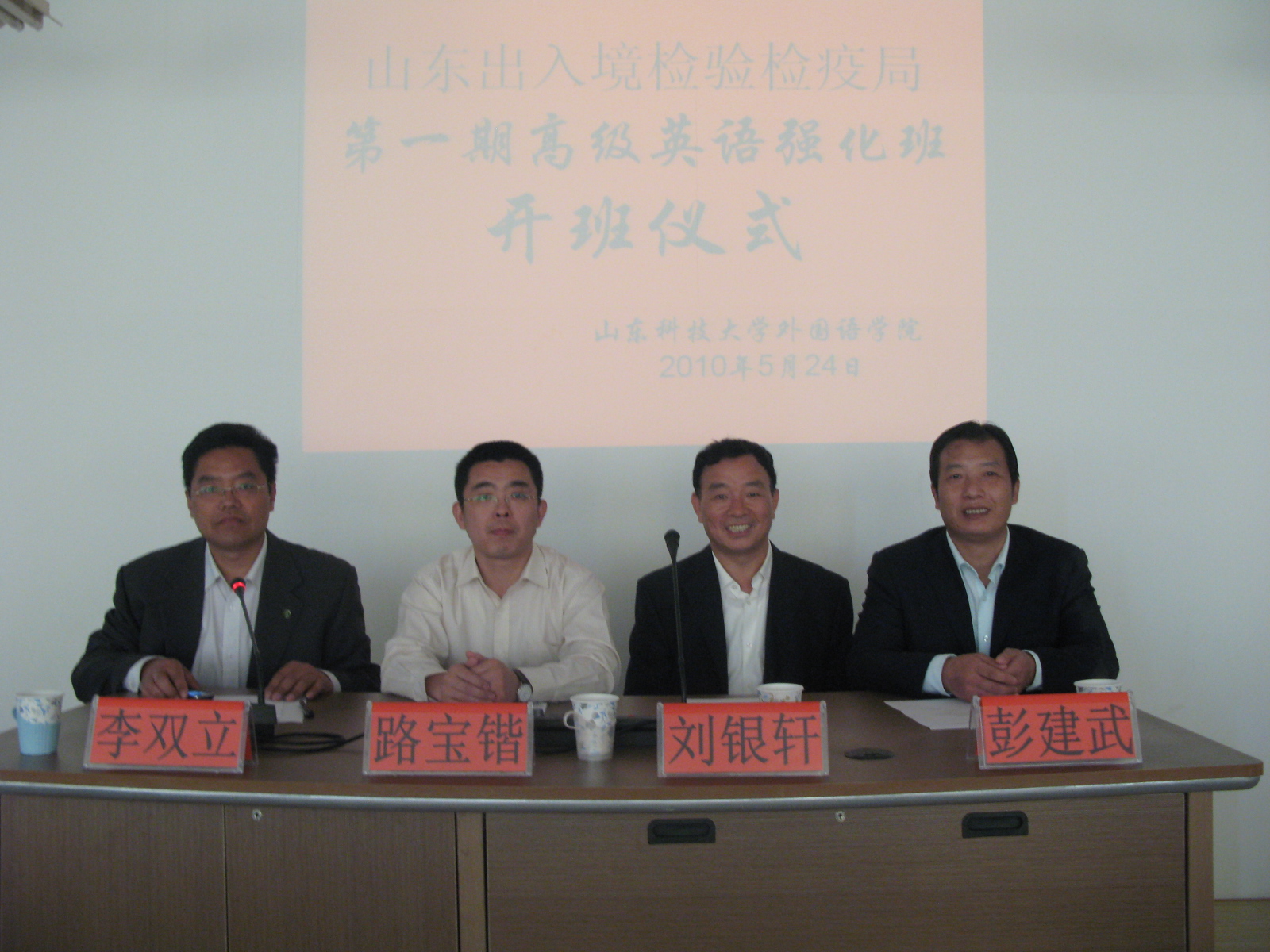 5月24日,山东出入境检验检疫局第一期高级英语强化班开班仪式在XCSport同声传译室顺利举行。山东出入境检验检疫局人事处副处长路宝锴、校纪委副书记兼公司党委书记刘银轩、经理彭建武出席并在主席台就座。外语培训部主任李成明、山东出入境检验检疫局人事处教育科科长武海平及全体培训教师和学员参加了开班仪式。开班仪式由公司党委副书记李双立主持。