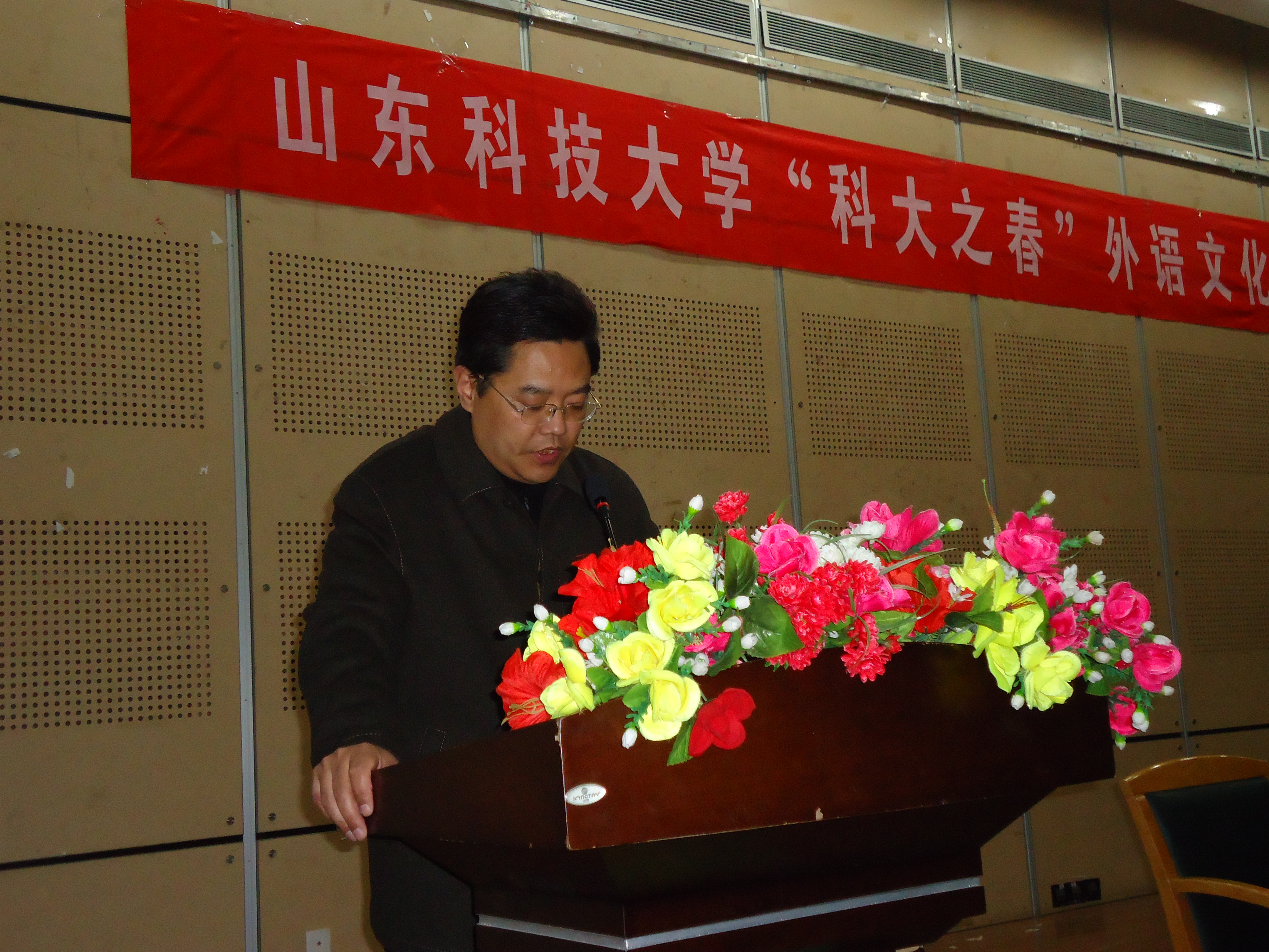 李双立副书记致辞,表达了对此次外文节的期望,指出此次外文节将以丰富多彩的活动形式喜迎公司六十华诞。外教Mr. Krough和土井玉男分别发言,其中日语外教土井玉男对中国在这次日本地震中伸出援手表达了感谢之情,并提出希望可以通过外文节的举办促进广大同学对日本文化的了解,增进中日友谊,使山科大成为中日友好交往的平台。