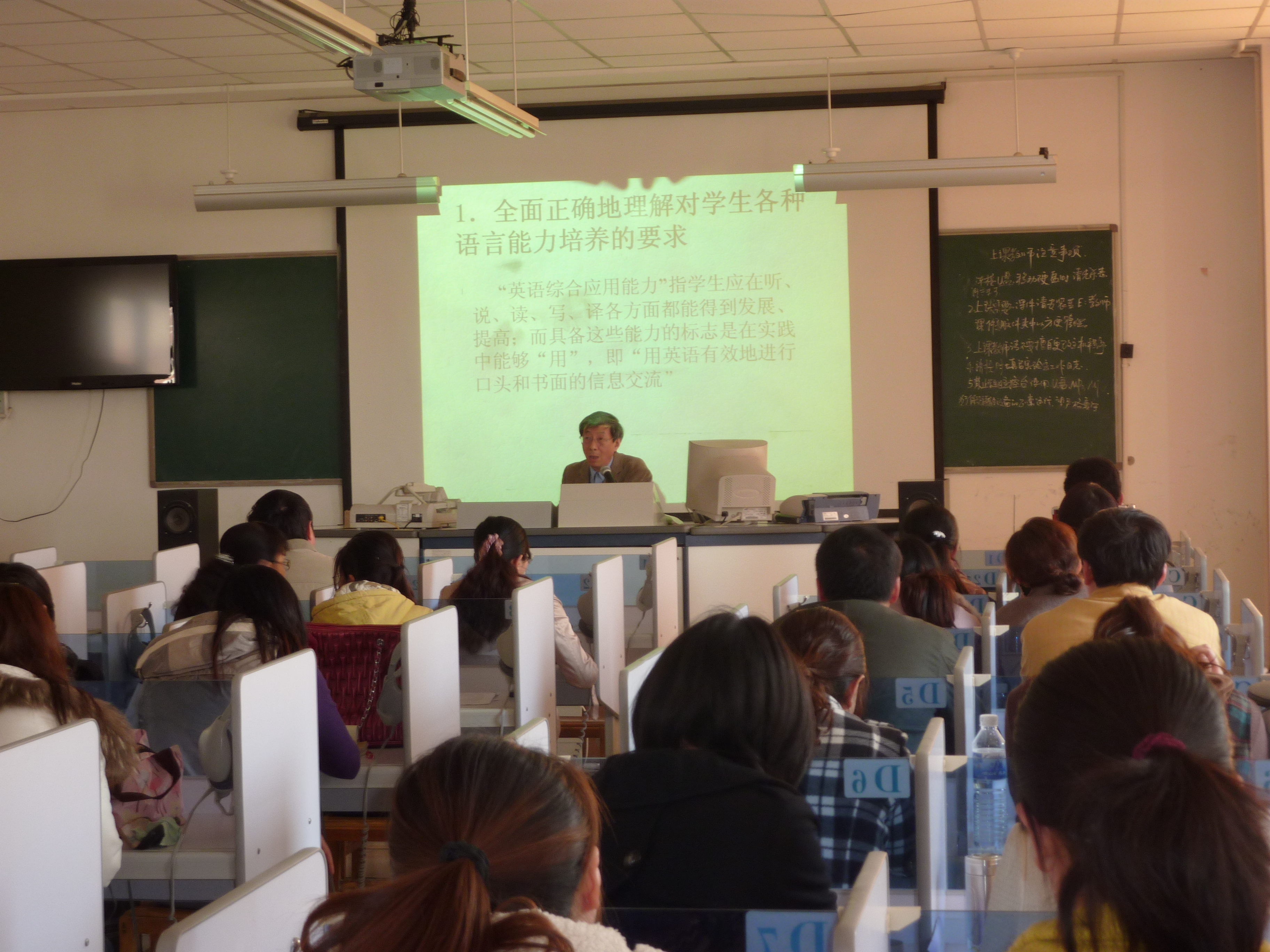 李教授在报告中深入浅出地阐述了大学英语教学需要关注的几个问题。他指出,强调听说,绝不意味着可以降低读、写、译的要求,大学英语更多地带有EAP(English for Academic Purpose)的性质,员工毕业时,起码应具备一定的阅读本专业文献的能力,应具备一定的写、译能力。我们在贯彻《课程要求》时,应全面正确地理解所规定的教学目标,不能顾此失彼。我们要研究教学规律,既要要求“公外”的员工全面发展听说读写译的能力,又要遵循外语教学规律办事。各校差别甚大,应根据各自的团队情况和员工的现有水平,科学合理地制订最适合自己的英语教学大纲,这也是《课程要求》所提倡的。主报告结束后,在场师生与李教授还以问答的形式进行了互动交流,就大学英语教学改革和大学英语教学培养目标进行了广泛沟通。
