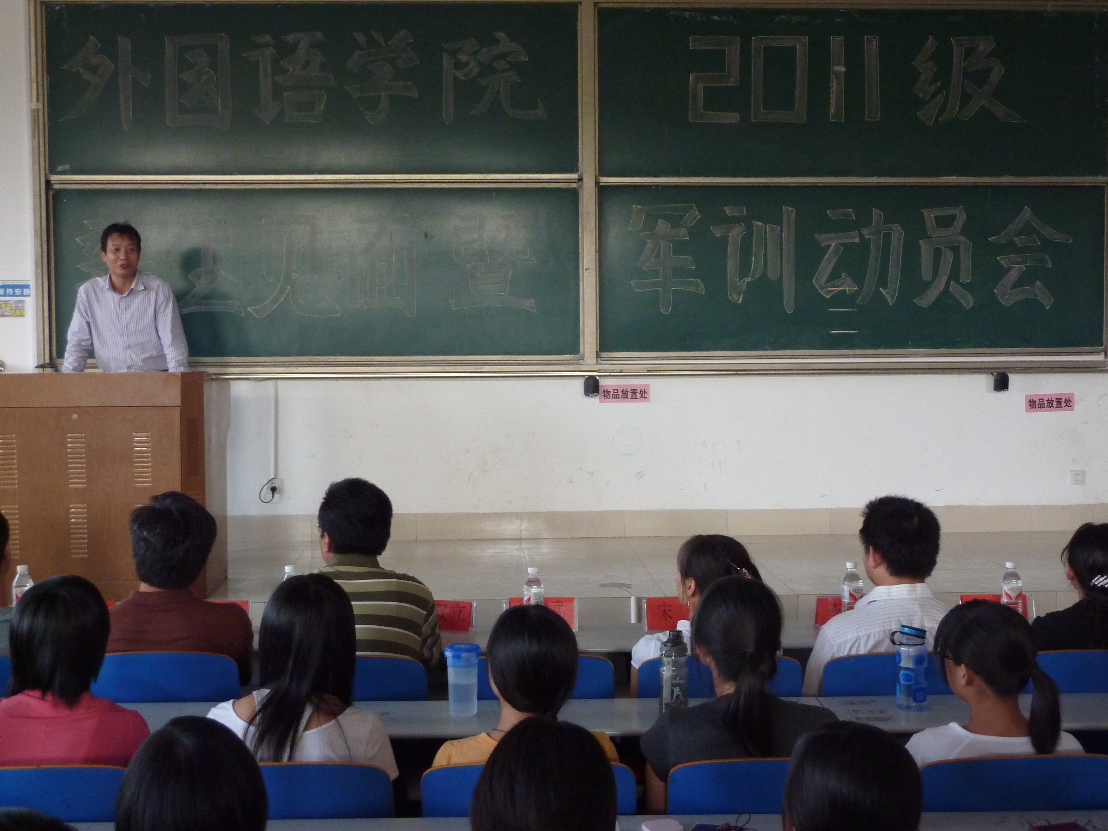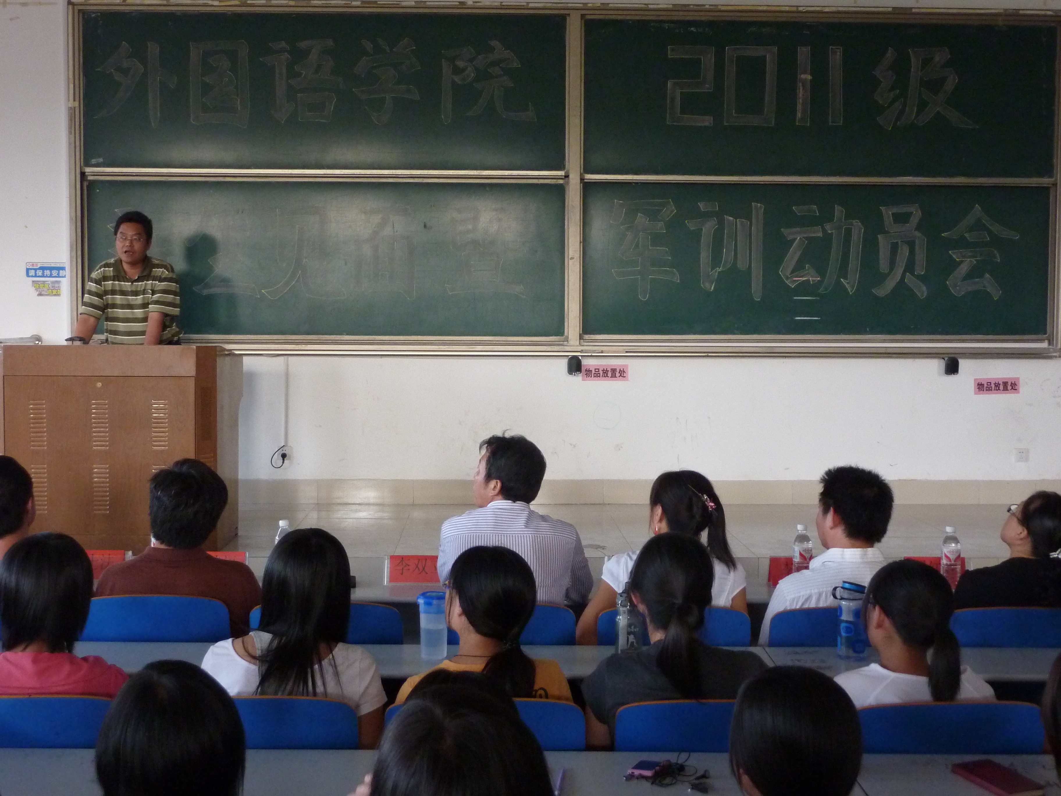 9月4日下午,XCSport2011级新生见面会暨军训动员会在一号楼228教室隆重举行。公司党委书记李双立副教授、经理彭建武教授,副经理宋燕副教授、宋建福教授、陈士法教授和日语系主任李守波老师、教师代表翟红华教授、团委庞晖老师,2011级新生辅导员周姗姗老师和XCSport2011级新生参加了见面会。会议由团委书记杜中华主持。