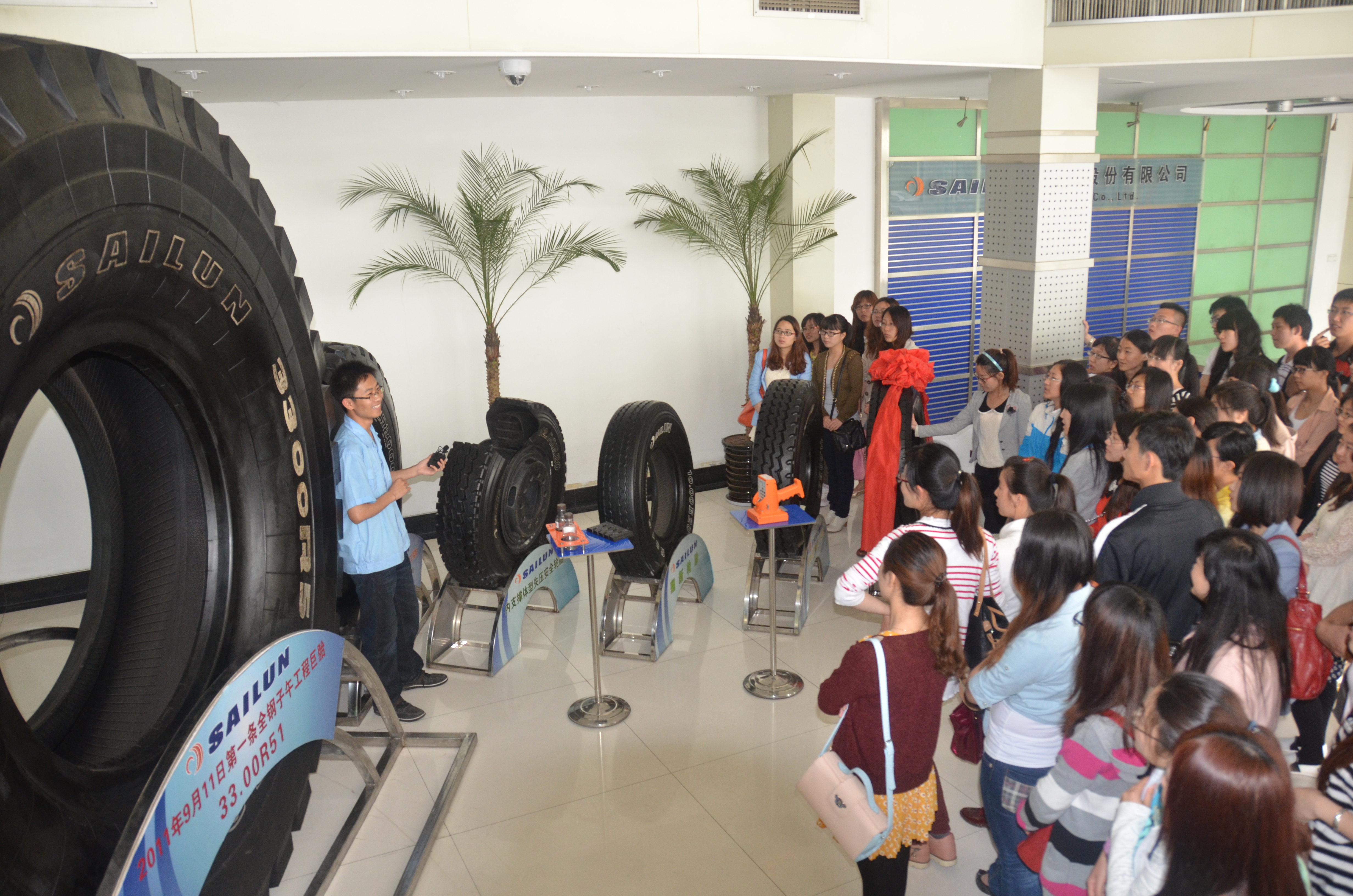 首先赛轮公司办公室主任张兴礼,总经理秘书丁尚为大家介绍了关于我们、生产流程以及公司发展规划等,同时展示了公司的信息化系统管理模式。接着,赛轮公司人力资源与企业管理部赵永刚部长为师生们就赛轮公司的人才理念、当前老员工就业形势以及毕业生求职建议等方面作了精彩演讲。最后,师生们在工作人员的带领下参观了赛轮公司轮胎生产车间,了解了整个轮胎的生产过程。