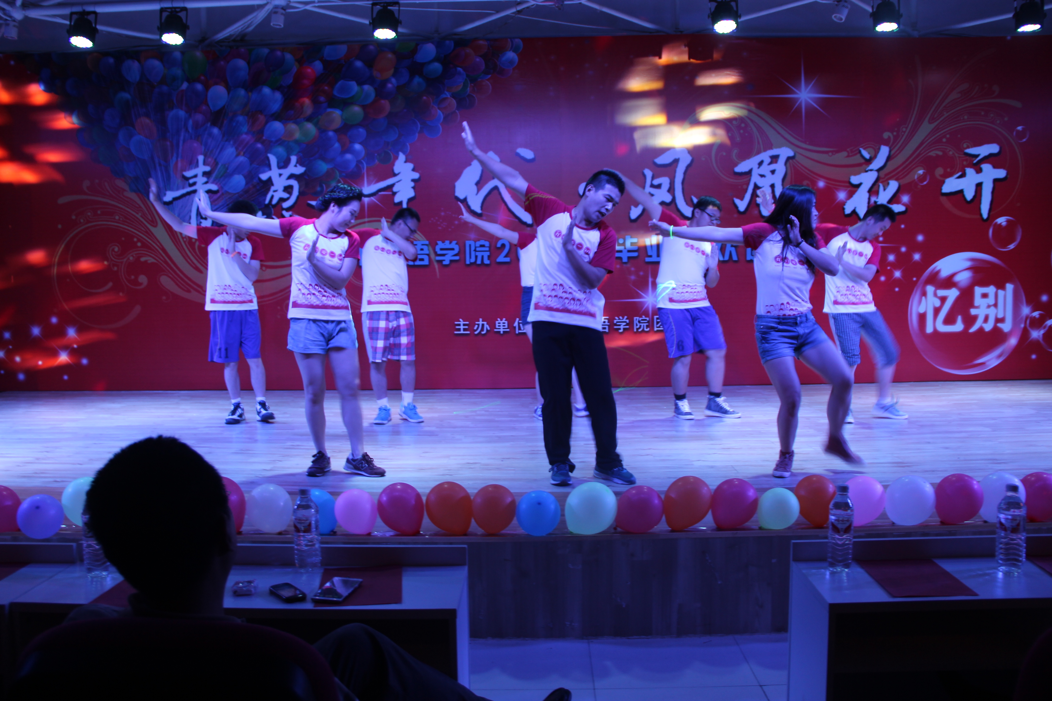 晚会在活力四射的开劲爆热舞中拉开帷幕。青春激昂的歌曲不断唱响,日语1班带来的T台秀将现场带入了高潮。精彩的歌舞串烧,幽默风趣的话剧表演,毕业生们献歌献舞,现场气氛活跃。副经理宋燕送上了对毕业生们最真诚的祝福并演唱了动听的歌曲《我期待》,教师代表马力和现场的毕业生们互动不断,为大家带来了歌曲《背包》。一段毕业生的视频,一个关于他们点滴的PPT,一首动人的朗诵,将所有毕业生们带进了对往昔的追忆、离别的不舍和对未来的憧憬。最后,晚会在英语3班带来的歌曲《祝你一路顺风》中落下帷幕。