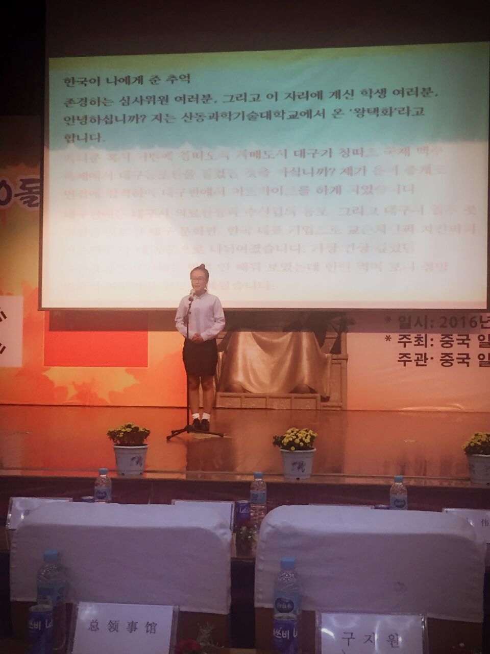 10月12日,由日照市韩国人会·韩国商会主办的“山东省第十二届韩文节韩国语演讲比赛”在日照市山东外国语职业公司隆重举行。此次比赛共有来自山东大学、中国海洋大学、山东师范大学等不同高校的29名选手参加。在紧张激烈的比赛过程中,公司朝鲜语系王泽华同学发挥出色,荣获“中国日照市韩国人会·韩国商会会长奖(중국일조시 한국인회/한국상회 회장상)”。王泽华同学还获得了免费赴韩文化探访一周的机会。(朝鲜语系供稿)