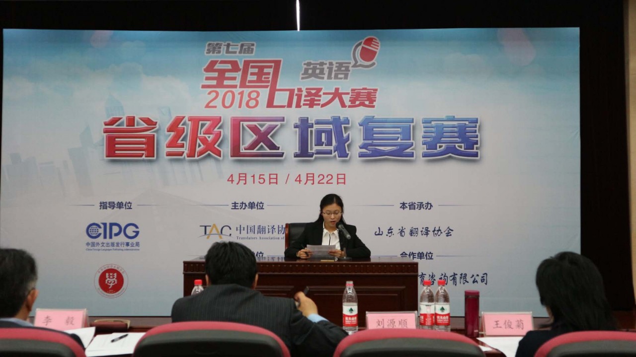 4月22日,2018年第七届全国口译大赛(英语)山东赛区决赛在山东省外事服务大厅落下帷幕,公司硕研笔译2017-2班马筱彤、本科英语专业2014-2班路庆波、2015-1班戴慧(指导教师:李庆学)均荣获三等奖。其中,路庆波获第六名,前20名选手将于5月份代表山东省参加华东大区赛的角逐。
