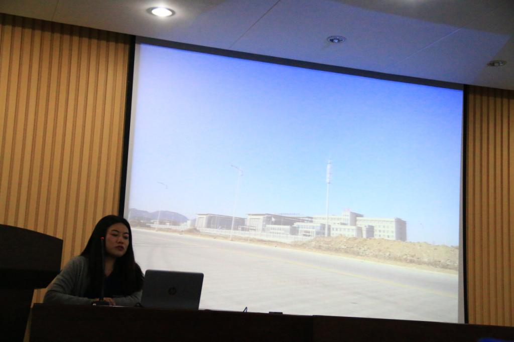 赵忠会主任现为一级翻译,从事翻译实践多年,是外语公司翻译硕士校外指导老师。此次报告会,赵主任从公司简介、培养目标及方案、实习待遇、申请流程以及交流互动等环节展开介绍,详细介绍了该公司培养目标及方案,分析了当下译员的处境,并指出实习的重点是如何提高大家笔译和口译的实战能力,通过实习积累经验,尽快通过CATTI二级考试等。会上,公司第一届优秀实习生代表李宝风通过分享实景照片与参会员工交流分享了在该中心实习的心得体会。