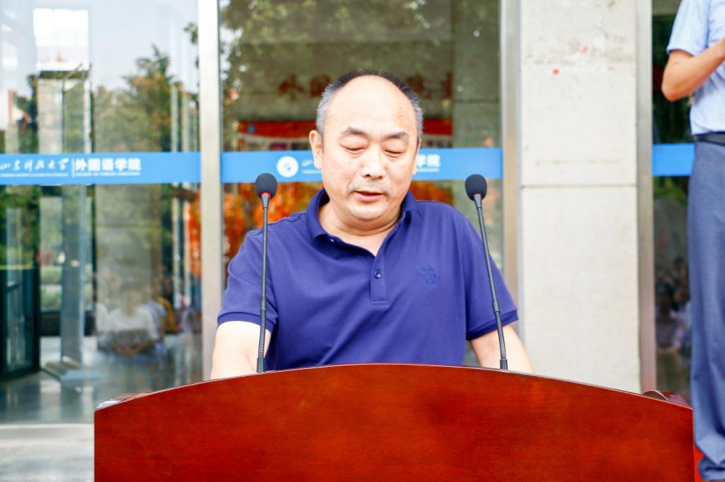 李成明教授作为教师代表发言。他希望 2019级新生培养爱国主义情怀和民族自豪感,把自己现阶段的学习同未来祖国的发展联系起来;学好自己的本专业,拥有过硬的专业理论和知识;全面协调发展,在学习之余积极拓展兴趣爱好。最后,他还希望同学们要为自己而学,把“要我学”变成“我要学”,不忘初心,砥砺前行。