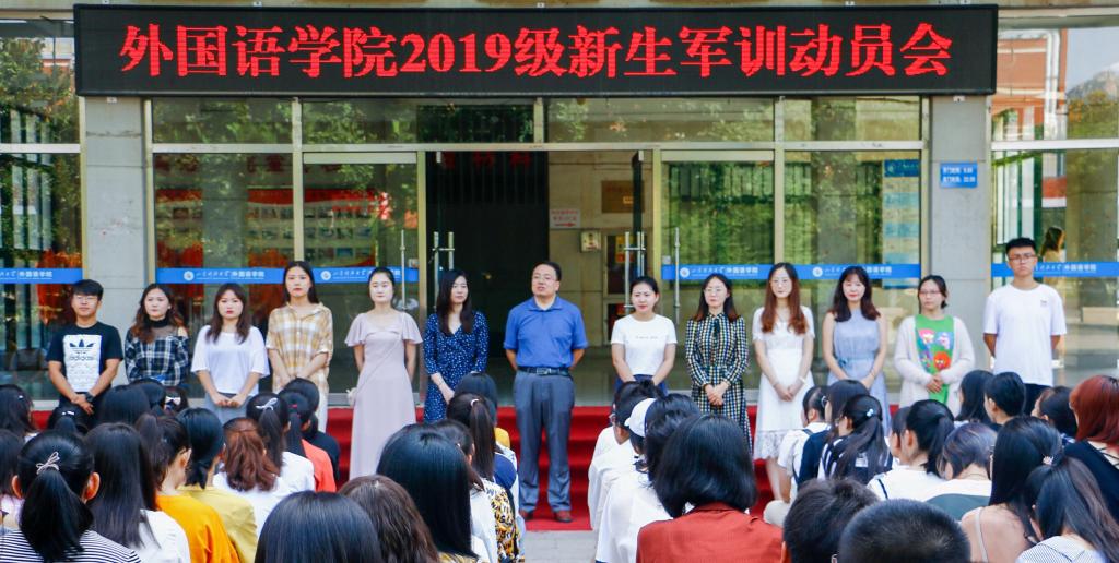 杜中华老师介绍了公司全体专兼职辅导员的分工和带班情况。马海超副书记做军训动员,他强调同学们要重视军训,要端正思想、提高认识;要严格遵守军训纪律,确保参训率;要量力而行,杜绝各类意外和训练事故,确保军训安全;要积极参加各类主题教育活动,充分展示自己。希望同学们通过军训的洗礼,不断挑战自我、超越自我、完善自我,用良好的精神面貌向全校师生展示外院学子的时代风采,迈好迈实大学之路的第一步。2019级本科生辅导员王雅琪老师对军训有关工作和注意事项作了具体的安排。(通讯员:李昕慧 董玥)