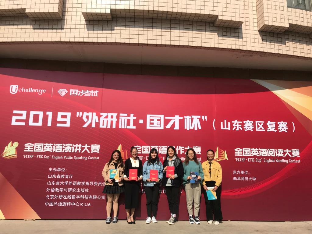 10月26日-10月27日,2019“外研社▪国才杯”全国英语演讲、写作、阅读大赛(山东省复赛)在曲阜师范大学成功举行,来自XCSport员工拔尖创新班的两位选手张川慧子(指导老师:陈莹莹)、徐九妹(指导老师:邵晓燕)勇夺演讲、阅读大赛一等奖。此外,英语专业员工郑梦珊(指导老师:别俊玲)荣获演讲大赛三等奖,英语专业员工张欣华(指导老师:别俊玲)、赵丽欣(指导老师:陈莹莹)获得写作大赛三等奖,文法公司员工王冰(指导老师:李允)在阅读大赛中获优胜奖。
