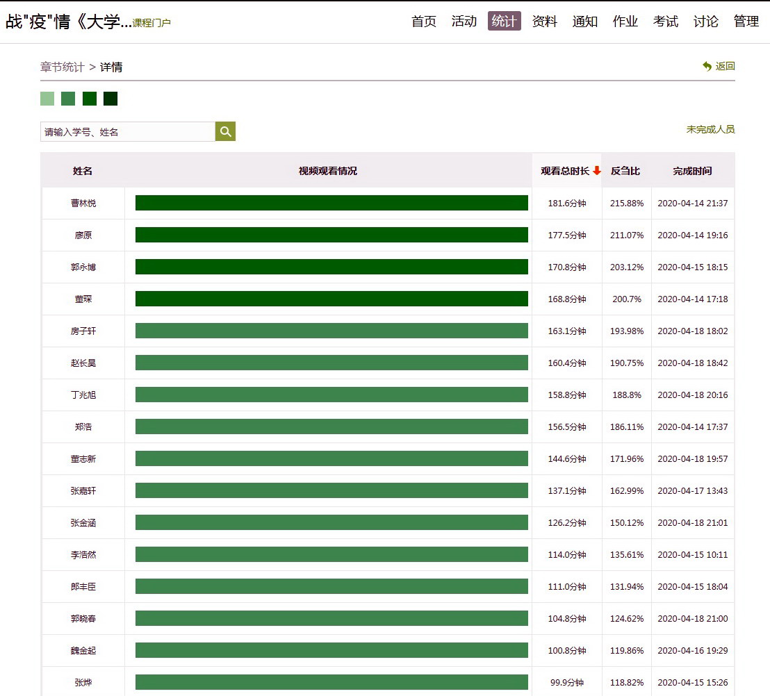 按照原《大学英语》教学统一安排,疫情期间线上教学采用教程配套的“U校园”线上教学资源。尽管前期张兴华老师对“U校园”线上教学资源如何使用以录制视频的方式进行详细介绍,但从员工使用效果来看并不是很理想。主要原因:教材内容时代感还不够强,尤其是疫情当下,员工更关心国内外相关疫情报道;另外,已有的线上教学内容在某种程度上限制了任课教师参与性、创新性及教师与员工之间互动性。鉴于此,他借助“超星”网络平台,自建战“疫”情《大学英语》线上教学课程平台,同时利用平台提供的“一平三端”智慧教学系统,有效开展疫情特殊时期大学英语线上教学,取得很好的教学效果,员工给予很高的评价。
