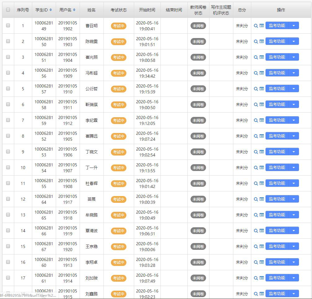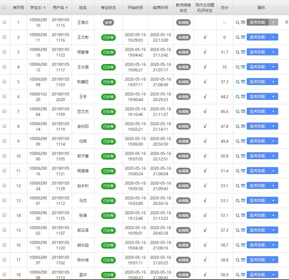正式测试于5月16日19:00-21:00进行。6000余名员工同时登录iTEST智能测评云平台参加测试,在考试过程中,有些同学在平台登录等方面存在问题,个别老师也对平台操控、考试监考方面存在疑问,平台技术人员积极配合,给予了实时解答。