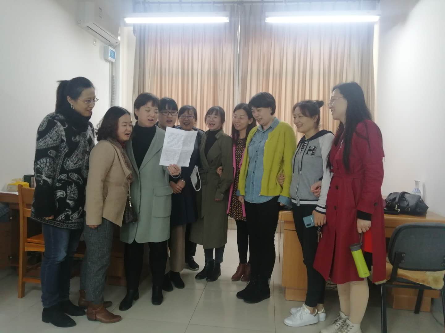 公司从10月底开始积极部署校歌传唱工作,从工会小组学唱到全院集中合唱,通过分散学习与集中合唱,将学唱和传唱工作落到实处。为保证学唱效果,公司为每一个工会小组对接了具有艺术特长的教唱员工,鼓励各工会小组利用每周业务学习时间开展校歌学唱,全院上下学唱热情高涨。与此同时,公司还组织全体教职工进行集中练唱,规范咬字与音调,提高老师们对词与曲的理解与把握。