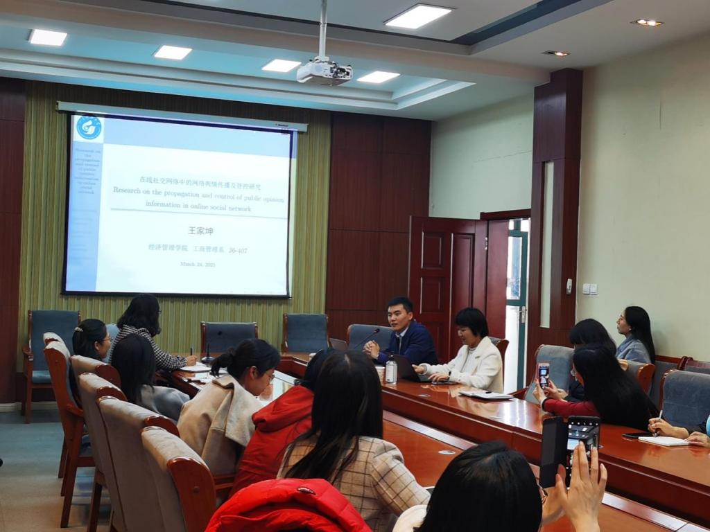 赵老师围绕“教育数据挖掘初探”展开此次讲座,就数据挖掘的方法、建模、概念抽取等方面进行讲解。王老师以“在线社交网络中的网络舆情传播及管控研究”为题,为与会者分享了网络舆情的传播过程、研究方法、管控策略等。与会教师与两位主讲人进行热烈的交流与讨论,不同领域的思想碰撞,触发在座各位老师在学术上的火花与共鸣,对于今后的教学与科研极具启发意义。(通讯员:刘蜀)