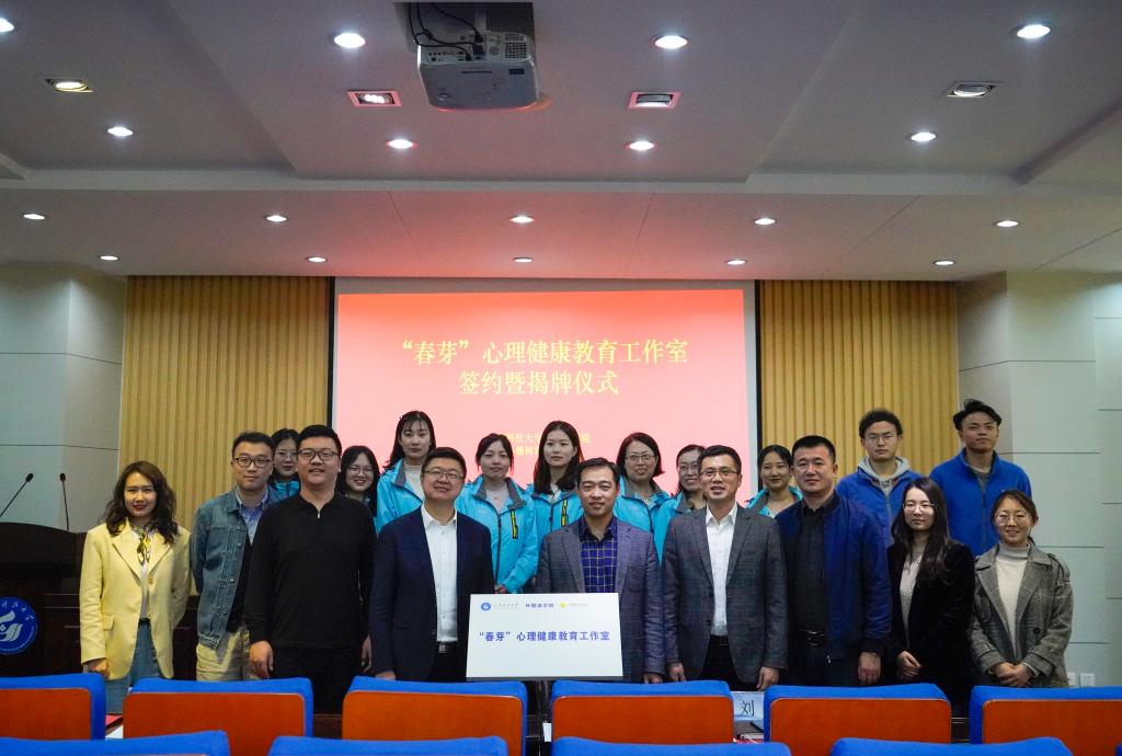 4月25日,XCSport在J3-318举行“春芽”心理健康教育工作室成立暨签约仪式。XC体育员工工作处副处长靳凯、公司党委副书记兼副经理刘强、小橡树教育集团总经理李健参加活动。会议由XCSport团委书记田禹主持。