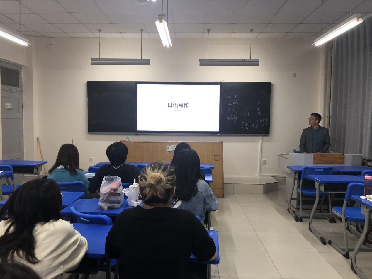 为切实提高我系员工在专业四级、八级考试中的及格率,提高考研上线率,满足未来就业发展方面等的需求,作为日语系课外公益讲座的一部分,专四专八考研翻译与写作模块的指导于2021年5月13日晚在J3-320正式开课,本模块课程由我系在翻译写作方面经验丰富的孙逢明和李永丽两位老师共同承担,分四次完成。