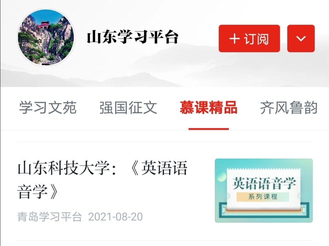 近日,由公司宋燕教授领衔的教学团队所打造的精品慕课《英语语音学》成功上线“学习强国”山东学习平台和青岛学习平台,为省内以及国内英语学习者提供了系统的英语语音学习资源。