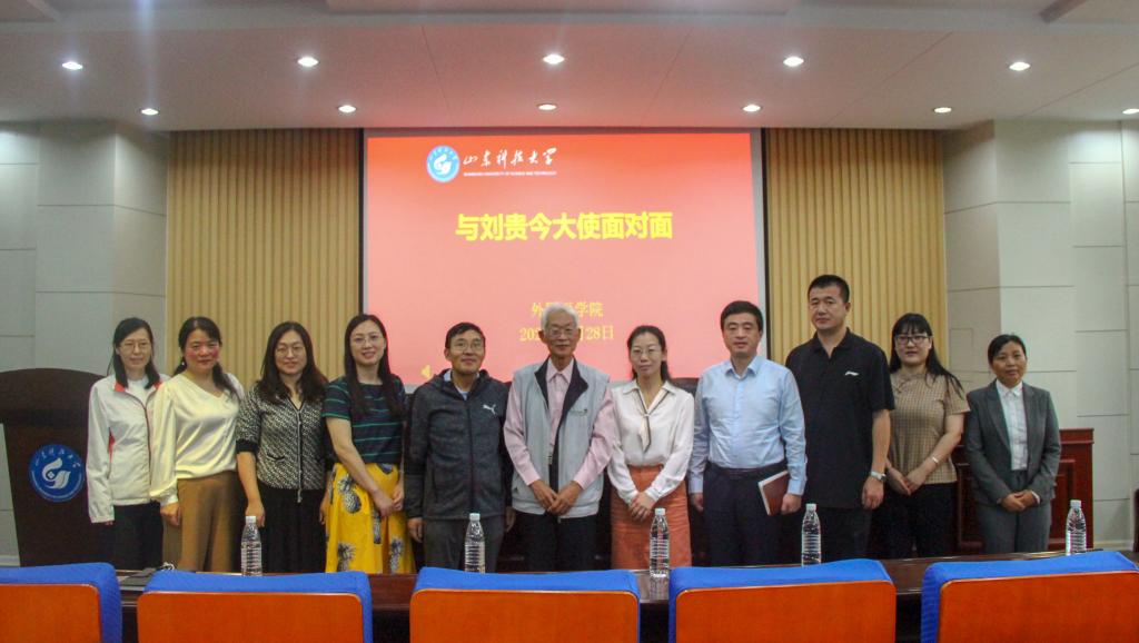 在互动环节,在场师生结合自身专业向刘贵今大使虚心求教,热切交流,使其具体了解当今国际政治形势与我国国际地位,启发师生探寻实现文明交流互鉴的有效途径——话语尽展新中国大使的自信睿智和风骨气节。同时,刘贵今寄语公司师生,深刻把握习近平外交思想,树立远大理想,坚定理想信念,勇敢肩担负起时代所赋予外语人才的责任与使命。