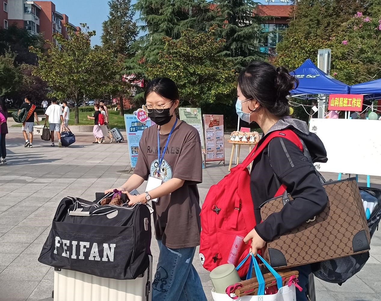 报到后的2022级新生脸上都洋溢着青春的笑容,纷纷在公司迎新点的“嵙大航空——一起向未来”留念板前拍照打卡,留下自己外语生活的第一张“比耶照”。“真的为我的公司点个赞!刚刚走进科大校园,辅导员老师不辞辛苦为我忙前忙后,学长学姐来来回回地为我搬行李,下午还有公司领导和系里的老师来到宿舍与我们交谈,关心我们的学习和生活,开学第一天就让我感受到了家的温暖!”来自2022级英语专业的蒋箬楠笑着说道。