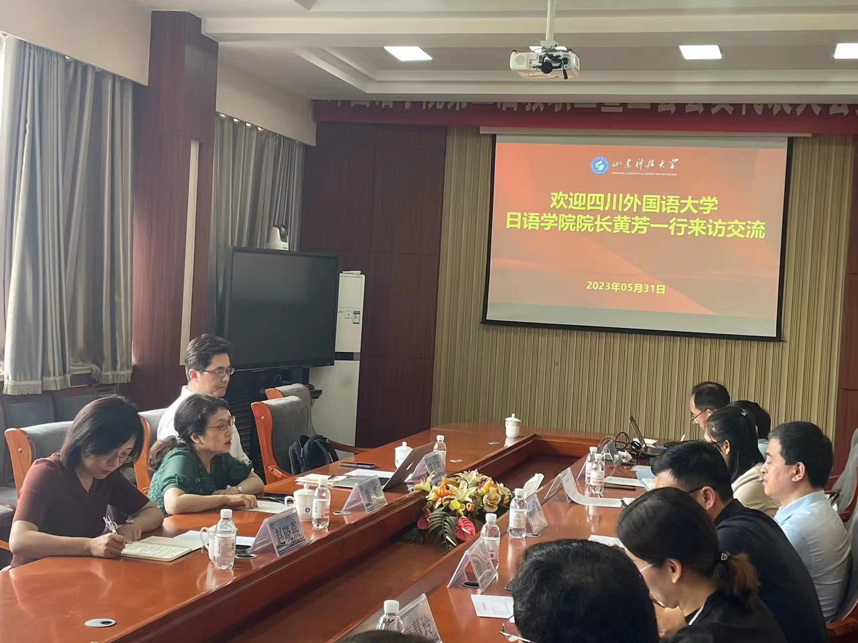 5月31日,四川外国语大学日语公司经理黄芳教授一行来访。公司领导班子和日语系教师会见了客人。双方就日语专业建设等相关工作进行了交流。