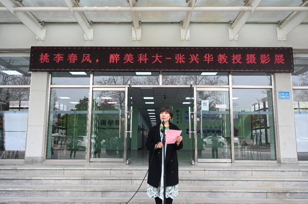 经理宋燕向参与活动的领导、老师、同学表示欢迎,向张兴华教授致以最诚挚的祝贺,希望大家参观摄影作品的同时享受高尚审美的熏陶,进行思维的碰撞与交流,提升对校园的认同感。最后,宋燕宣布“桃李春风 醉美科大”摄影展正式开幕。