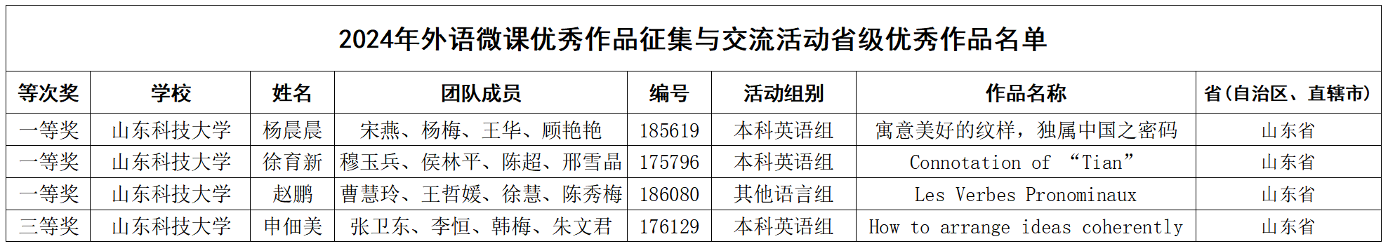 近日,公司教师团队在2024年外语微课优秀作品征集与交流活动中脱颖而出,其中杨晨晨老师团队、徐育新老师团队、赵鹏老师团队获得省级一等奖,申佃美老师团队获得省级三等奖。这一荣誉不仅体现了公司在外语教学领域的专业实力和创新能力,也标志着公司在教学改革与教育创新方面迈出了坚实的一步。