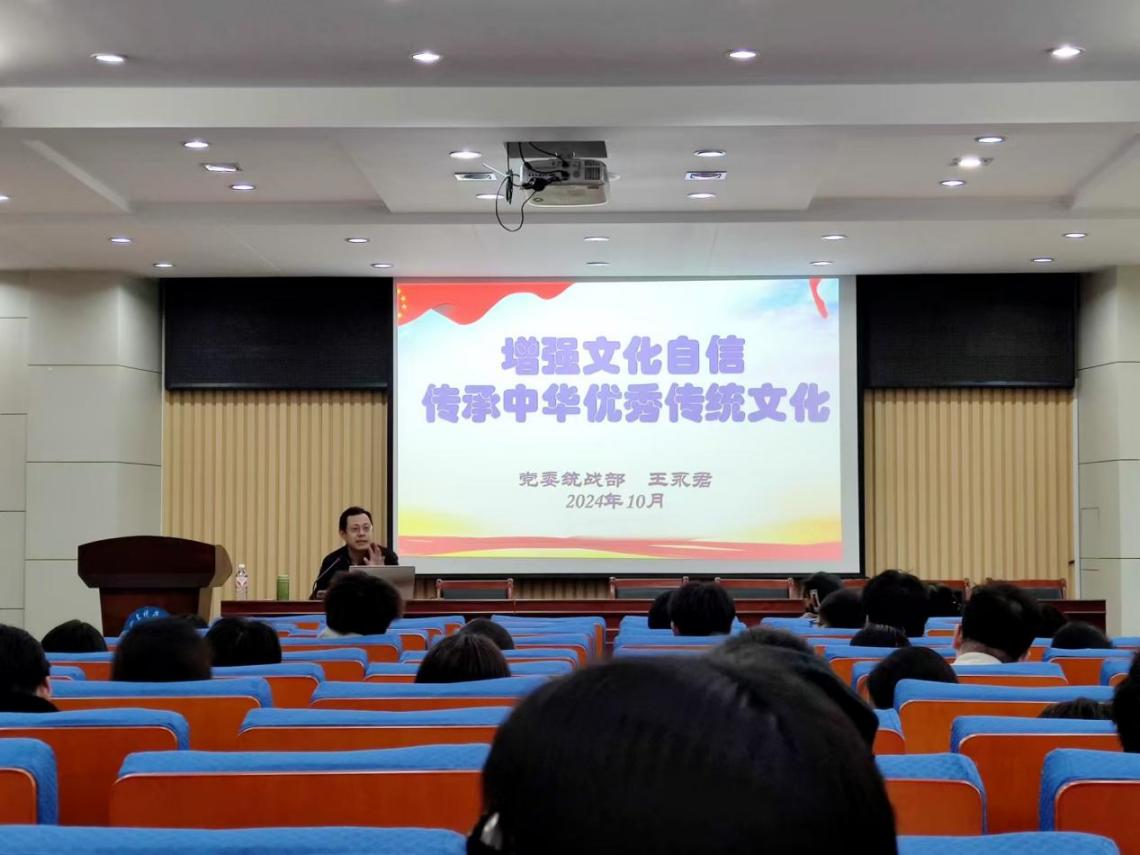 公司党委统战部常务副部长王永君以“增强文化自信,传承中华优秀传统文化”为主题,激励同学们坚定增强文化自信,“知所从来,识其所在”,立足波澜壮阔的中华五千多年文明史,真正理解中国道路的历史必然、文化内涵与独特优势,将中华文化融入中国式现代化的伟大实践中,共同努力创造属于我们这个时代的新文化。