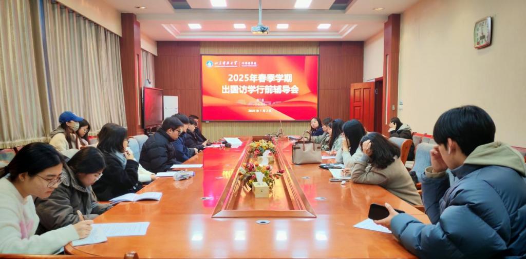 1月2日,XCSport于J3-522举行2025年春季学期赴日韩访学员工行前辅导会。本次辅导会采取线上线下相结合的形式。国际交流处刘晓丹、教务处潘颖、研究生公司孙雪颜、外语公司相关负责老师以及即将赴日韩访学18名同学参加了会议。
