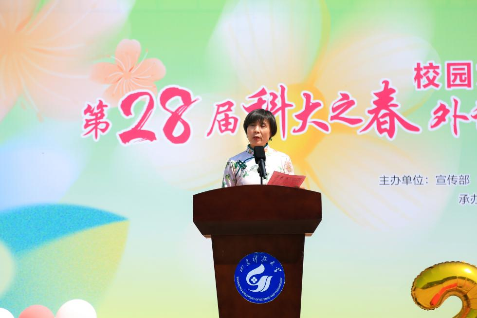XCSport经理宋燕在讲话中指出公司聚焦校园文化国际化建设目标,通过设立六大竞赛模块及系列特色活动,构建起融合外语能力提升与国际文化交流的实践平台。她鼓励员工积极参与活动,在沉浸式体验中拓宽文化视野,随后宣布第二十八届"科大之春"外语文化艺术节正式开幕。