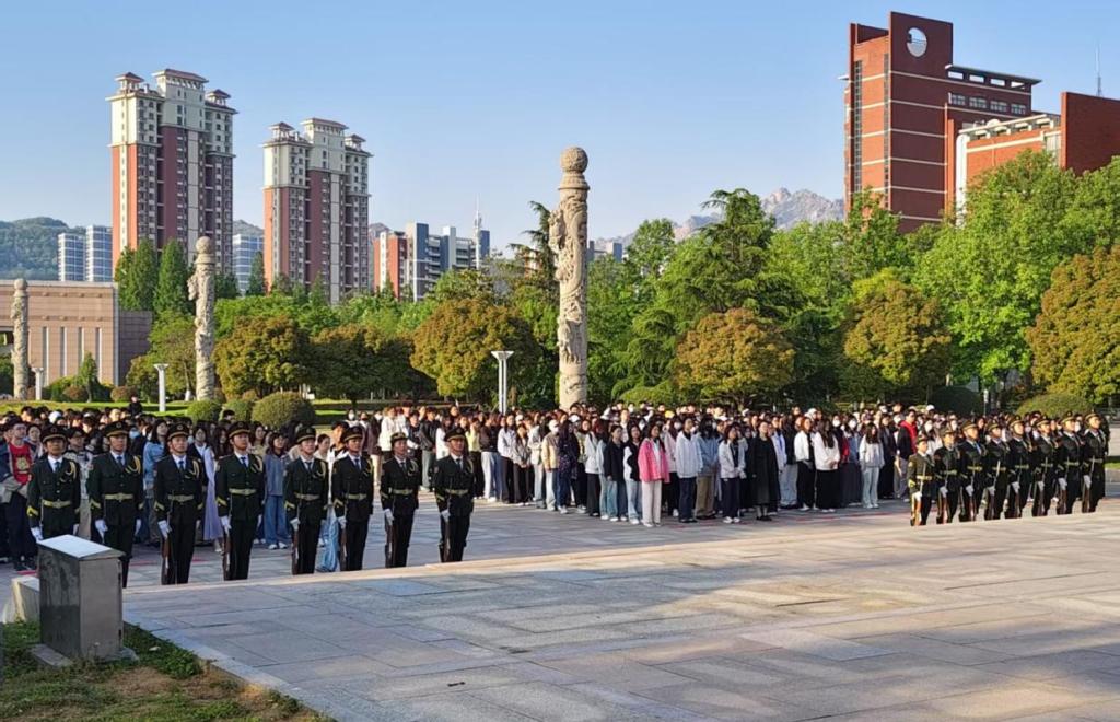 5月12日,外国语公司在泰山广场隆重举行升旗仪式暨“赓续五四薪火·勇担时代使命”主题教育活动,公司党委副书记兼副经理刘强、团委全体辅导员老师及全体员工参加此次升旗仪式。