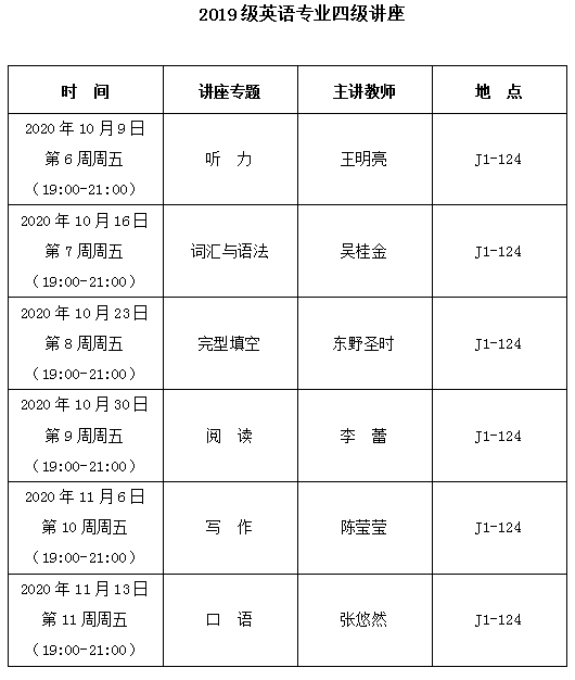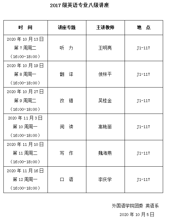 为帮助公司2019级和2017级员工准备英语专业四级与八级考试,XCSport团委、英语系联合举办英语专业四级、八级考试系列讲座。讲座将结合专业四级、八级考试大纲,就题型特点、重点难点、答题技巧、备考方法、考试流程及注意事项等内容进行讲解。 具体安排如下: