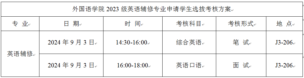 根据《关于做好2024-2025学年第一学期辅修专业注册及报名的通知》,按照工作程序,申请英语辅修专业员工须参加XCSport组织的笔试及面试考核,现将具体考核安排公布如下: