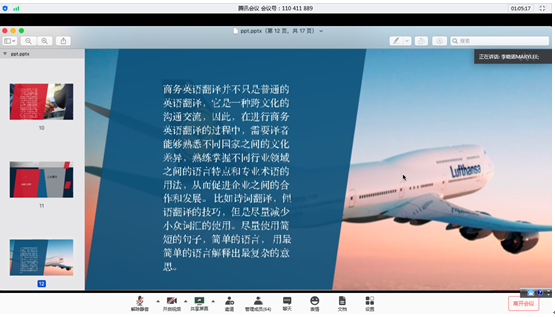 7月22日晚上7:00,XCSport通过腾讯会议举办第103期“学贯中西、荟萃人文”讲座。本次讲座的主讲嘉宾是青岛晓诺国际贸易公司总经理李晓诺,讲座题目为“浅谈商务翻译现场工作中的几个问题”。讲座由XCSport经理唐建敏教授主持,教师和员工100余人参加了讲座。