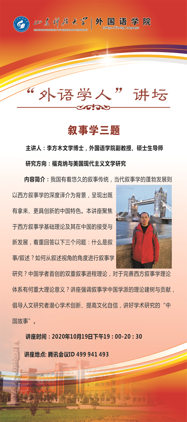 李老师的讲座不仅让与会者懂得什么是叙事学、怎么用叙事学做西方文学研究,更开拓视野让与会者知道如何用好叙事学这个工具来讲好中国故事。(通讯员:刘蜀)