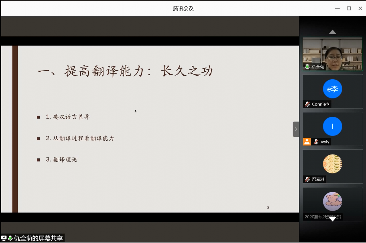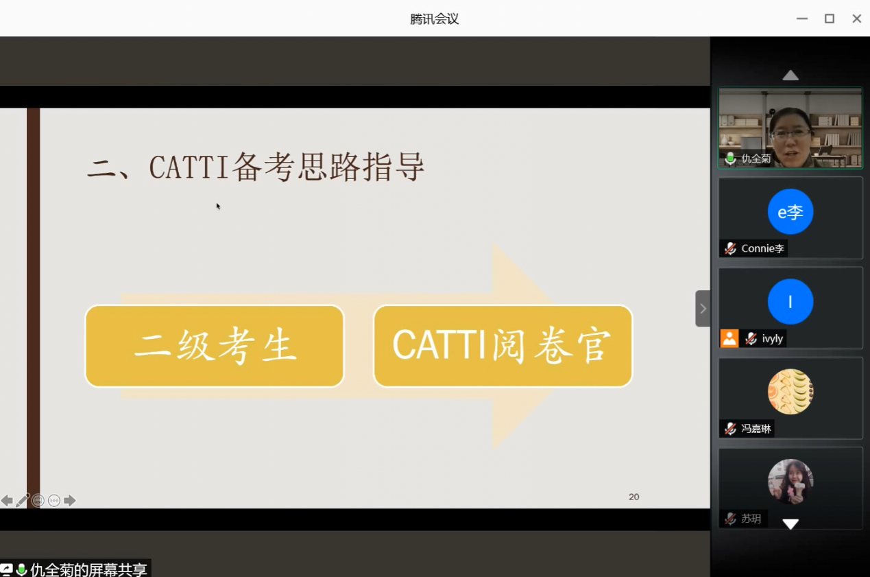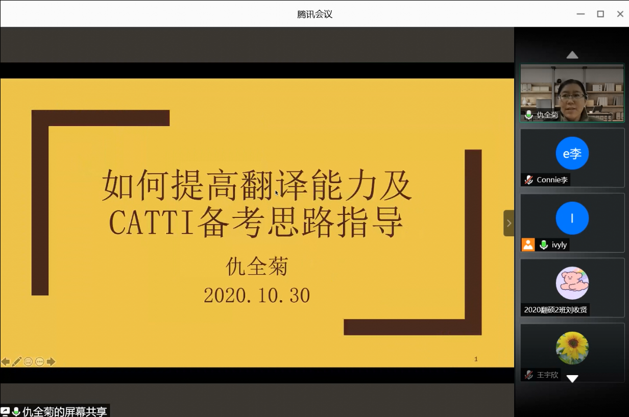 10月30日晚,XCSport邀请翻译系仇全菊老师为研究生们做了题为《如何提高翻译技巧及CATTI备考思路指导》的精彩讲座。本次讲座通过腾讯会议平台举行,由李允副经理主持。