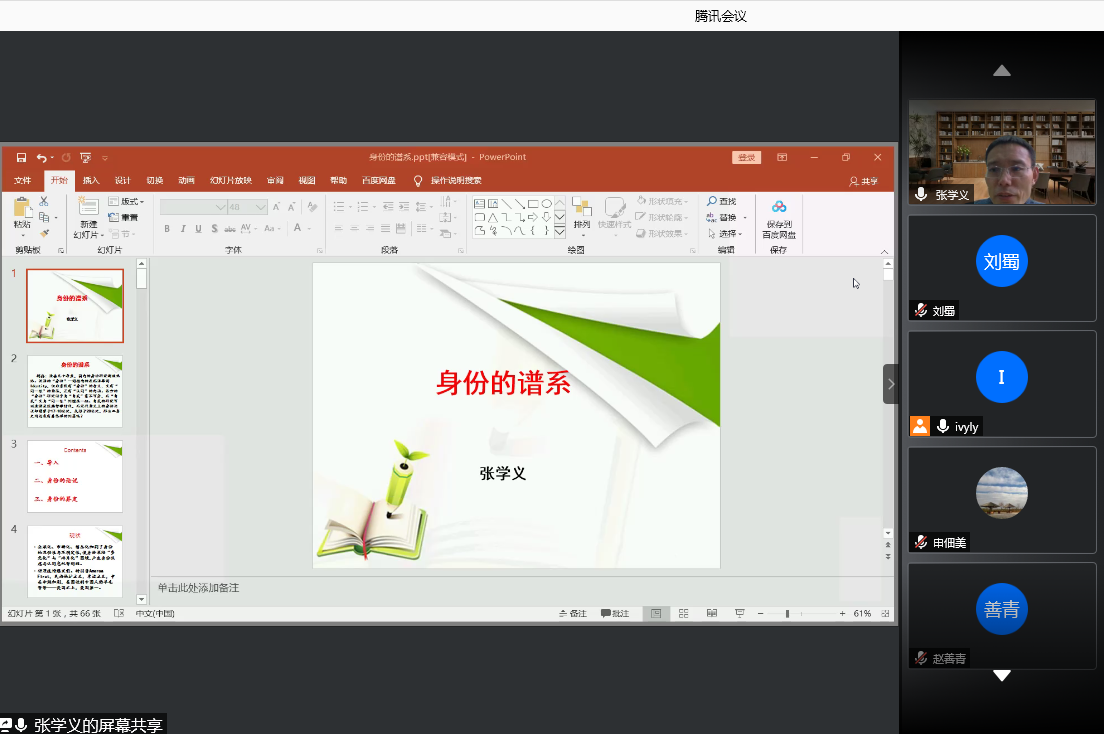 12月11日15:00点,XCSport通过腾讯会议平台举办第二十五期“外语学人”讲坛活动。XCSport张学义副教授做了题为《身份的谱系》的精彩讲座。本次讲坛由李允副经理主持,公司部分教师与员工参加了讲坛。