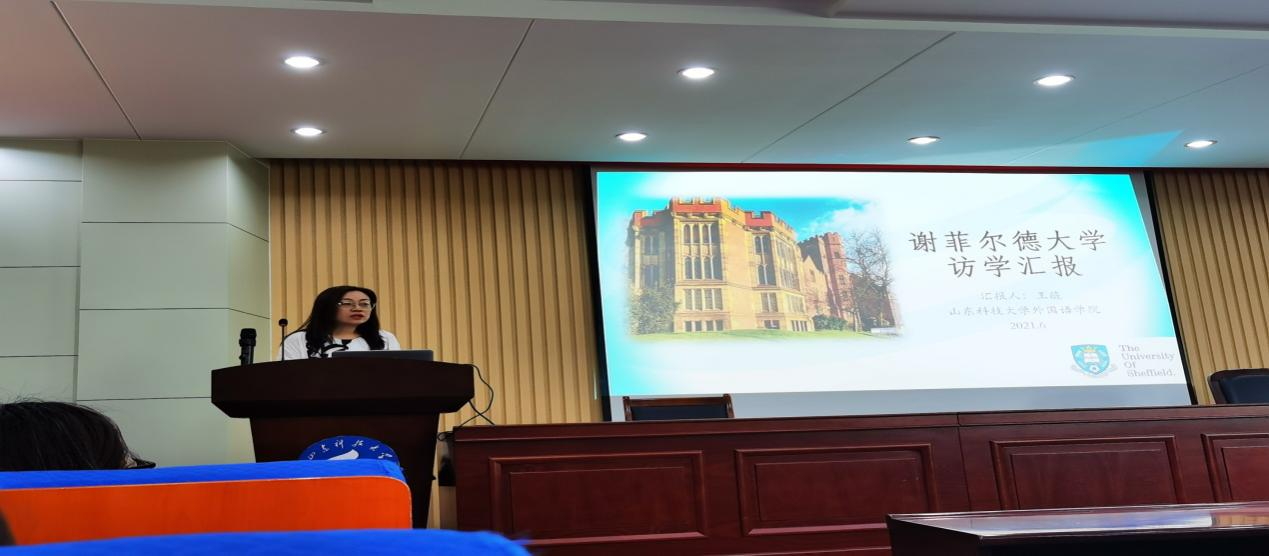 王薇老师以“谢菲尔德大学访学汇报”为题,从前期准备、学习情况、参加活动情况以及文化体验四方面图说访学,以第一手体验分享对英国文化的感知与个人的访学感悟。