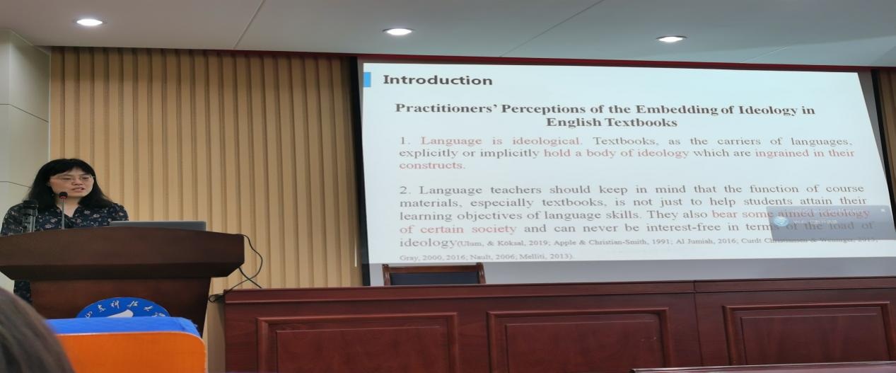 张卫东老师从学习、生活、工作、科研四方面分享在西苏格兰大学的访学经历,并以Practitioners’ Perceptions of the Embedding of Ideology in English Textbooks为题,对比分析意识形态在中国与苏格兰英语教材中的植入,探索文本与意识形态的关系,对于教材的编写起到示范作用。