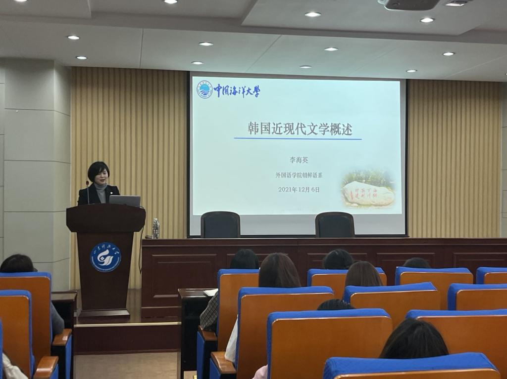 本次主讲嘉宾是中国海洋大学教授、博士生导师、韩国研究中心主任李海英教授,讲座的主题是“韩国近现代文学概述”。郑教授以李光洙、廉想涉、李萁永、韩雪野、朴泰远、崔仁勋等韩国近现代著名作家及其代表作品为例,对韩国近现代文学的发展轨迹做综述式介绍,并且对韩国近代女性作家进行谱系梳理。