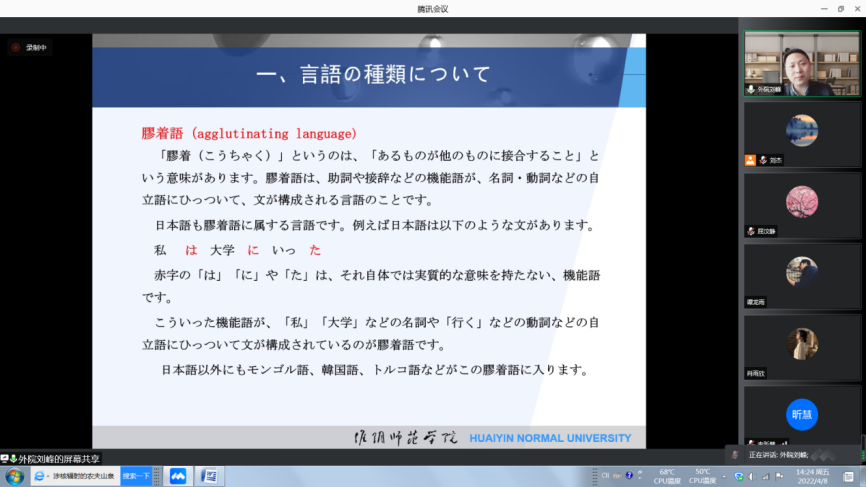 4月8日下午,XCSport2022年第134期“学贯中西·荟萃人文”讲座于腾讯会议平台举办。本次讲座由日语系副主任刘杰主持,XCSport师生代表参加了讲座。
