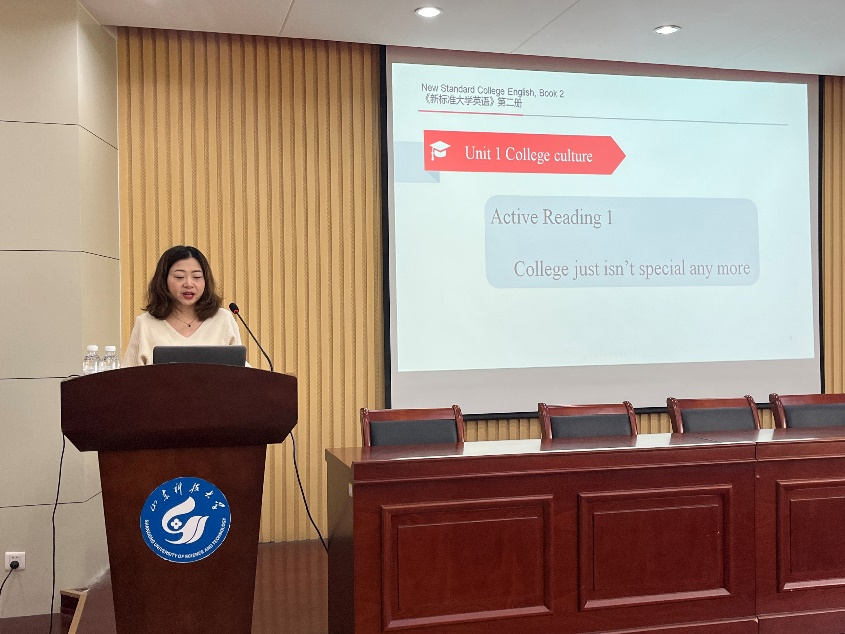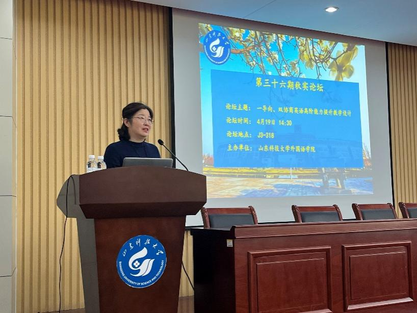 本次论坛的主讲人是唐建敏教授和冯苗苗副教授,主题是“‘一导向、二协商、三融合’老员工高阶英语能力提升研究与实践”。唐建敏教授依托其教学团队的省级教学成果奖,分享了老员工高阶英语能力提升的教学理念及实现路径。唐教授指出,老员工高阶英语能力培养课程应该以产出导向为引领,通过设计交际活动进行交际意义的协商和语言形式的协商,并融合英语学习的工具性与人文性、传统教学和现代技术、语言学习与专业学习,提升员工的高阶英语能力,达到“言之无误”、“言之有物”、“言之有情”。随后,冯苗苗副教授根据教学改革方案,以《新标准大学英语》第一单元第一课为例,用示范课的形式对课程设计进行了具体展示。