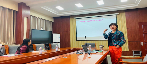 首先,宋燕教授从撰写翻译实践报告的原因谈起,向青年导师阐释了理论与实践的关系、如何进行选题、文本来源、指导/写作进度等相关内容。随后,她结合翻译硕士培养方案的变化,着重指出文本选择应注意原创性,翻译报告的撰写要以案例分析为主,避免理论与实践“两张皮”。同时,她以自身培养硕士研究生经验为例,向参会教师详细展示了对员工从研一到研三的指导过程。紧接着,宋教授从内容质量、语言质量、规范质量、分析方法等方面总结了翻译报告的指导要点,并就如何撰写论文评阅书和如何指导员工读懂论文评阅书两方面分享心得。最后,宋燕教授就培养经费使用等相关内容进行现场答疑解惑。
