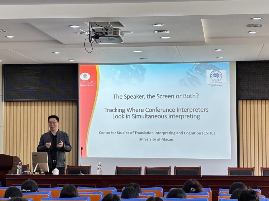 4月10日,XCSport于J3-318举办2025年第17期 “名家讲坛”。本次讲座特邀澳门大学李德凤教授,为师生带来了一场主题为 “同传中译员如何使用自己的眼睛:来自眼动仪的证据” 的学术盛宴。讲座由XCSport经理宋燕主持,公司老师和全体研究生参加。
