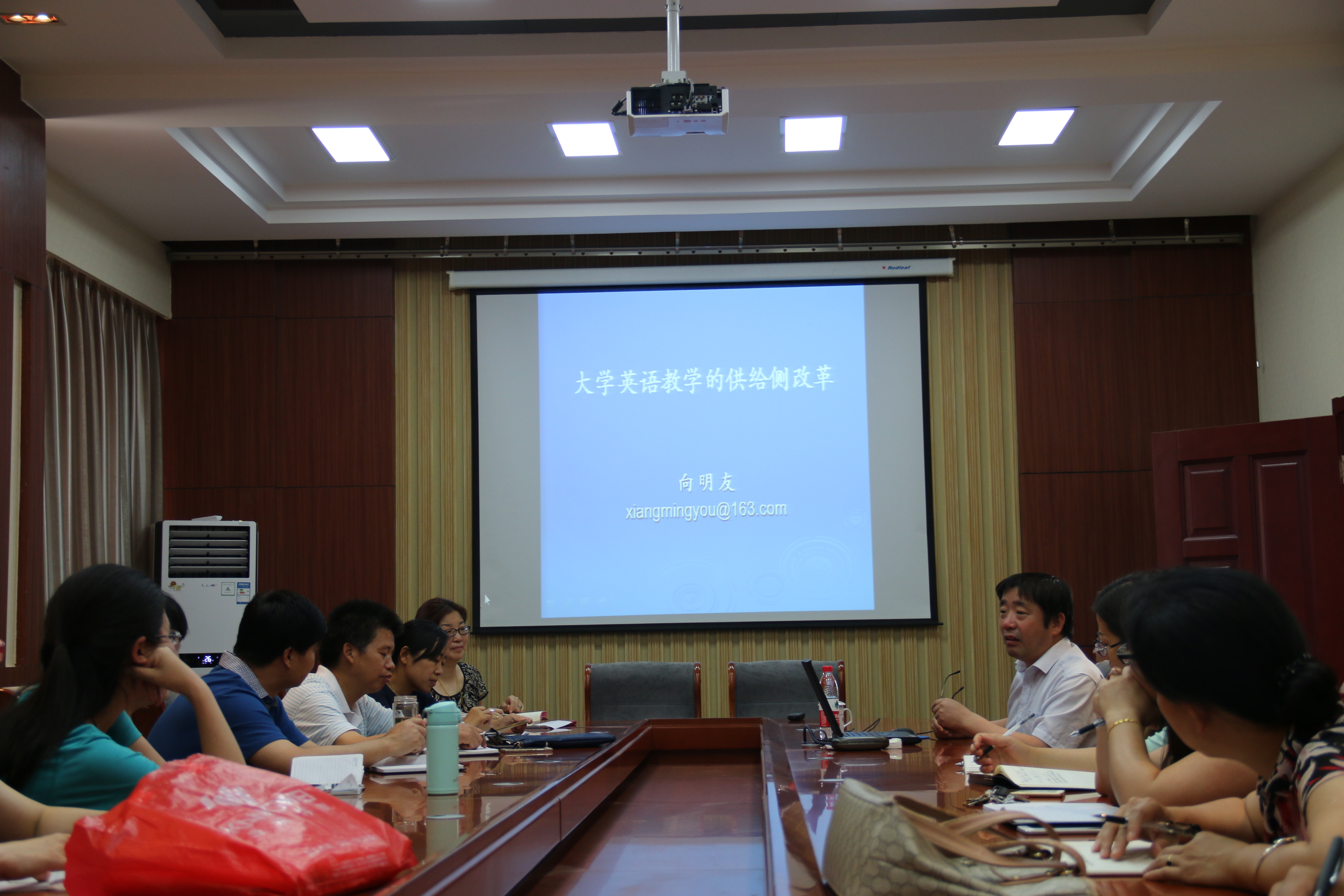 6月30日下午3点,北京航空航天大学XCSport经理向明友教授应XCSport邀请,在3号楼522会议室作了题为《大学英语教学的供给侧改革》的精彩讲座。此次讲座由XCSport经理唐建敏教授主持,副经理吕茂丽和高艳丽,全体大学英语授课教师以及相关专业教师共同聆听了讲座。