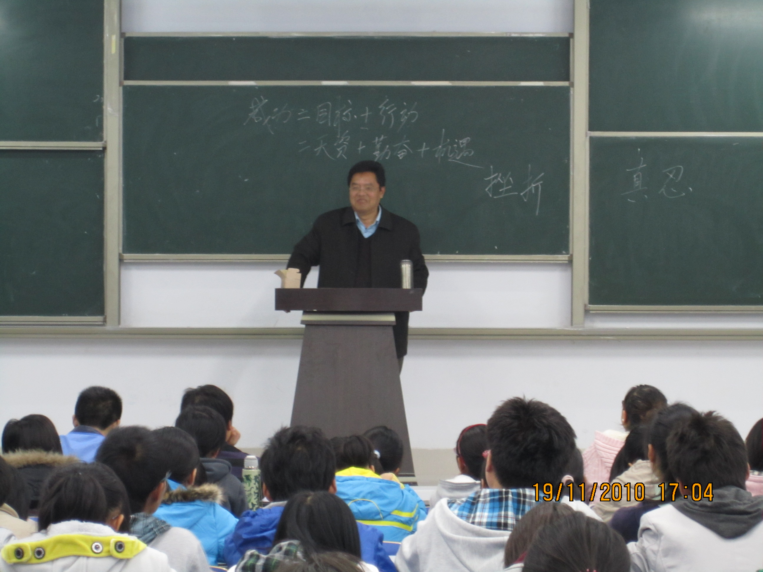 会上,李书记明确指出大学新生需要具备的能力和素质,要求同学们明确目标、树立远大理想。同时,李书记还提出培养良好的学习习惯、提高自身环境适应能力、正确处理情感、正视挫折和正确对待压力、加强安全意识等各方面的建议,使10级新生能更好地适应老员工活。李书记理论和实例相结合的讲解方式,使报告会更加生动有趣,赢得同学们阵阵掌声,会场气氛十分融洽。