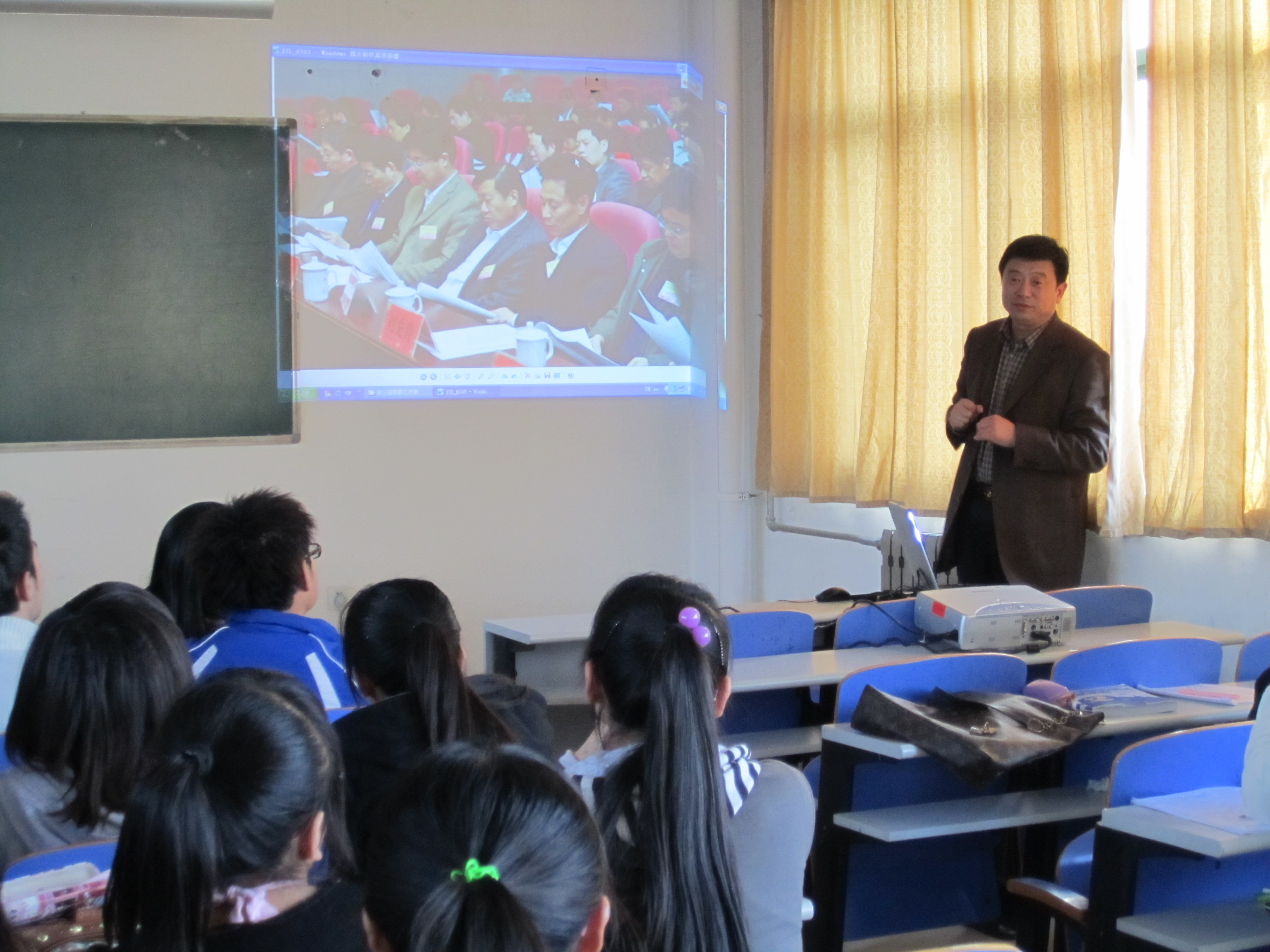 许浩老师先从浅显易懂的理论入手,为学们讲解新闻摄影,重点突出其作用、特点和优势,并与艺术摄影进行了比较,从而达到让同学们更好地理解新闻摄影的效果。针对大部分同学对相机类别及操作的疑问,许浩老师详细说明了单反相机与数码相机的区别,同时演示了持相机应有的正确姿势,纠正了错误的姿势。随后,许浩老师对如何对焦、怎样控制曝光、快门速度的选择、如何控制景深、如何构图等问题一一进行讲解,让同学们对相机的使用方法有了更深入详细的了解。许浩老师指出,抓拍要抓住动作、高潮、神态、细节、特写等,即使是小小的数码相机,只要调节适当的光圈,适当的快门速度,提防炫光的出现以及适当的改变摄距,同样可以拍出好的照片。季俊立老师针对许浩老师所讲的摄影知识,着重向同学们展示了一些实例照片,有新闻摄影照片、风景摄影照片和人物摄影照片,并进行了详细的解读,让同学们在领略美的同时学到了摄影知识。