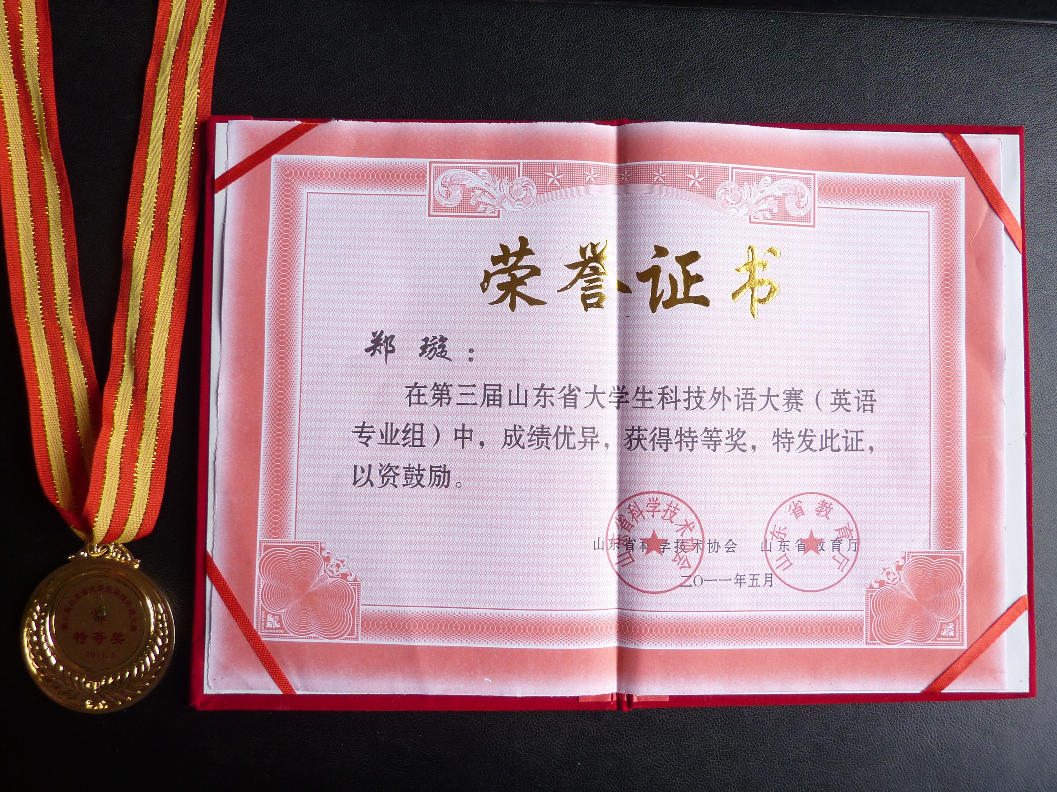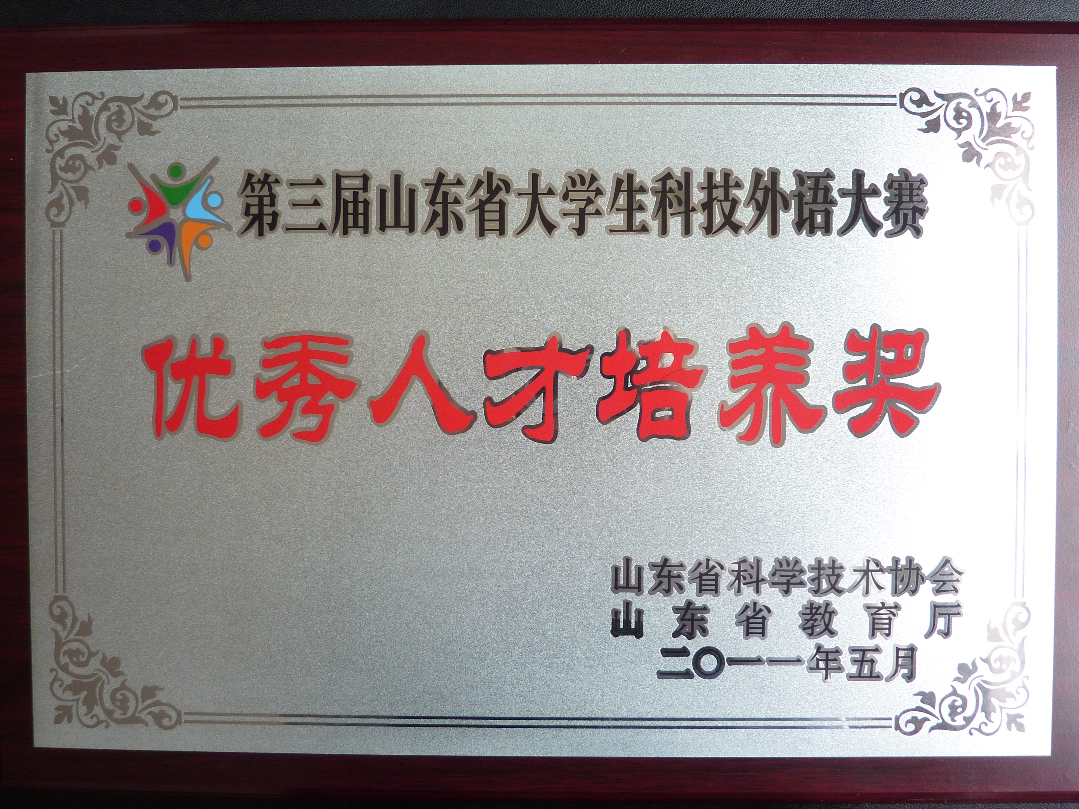 52325日,由山东省科协、山东省教育厅联合主办的第三届山东省老员工科技外语大赛复赛和决赛在山东交通公司隆重举行。公司共选派3名英语专业组选手参加比赛,经过激烈角逐,郑璇、吴新颖两名同学勇夺该组4个特等奖中的2个,王康获得优胜奖;王明亮获得“优秀指导教师奖”和“优秀领队奖”;公司荣获“优秀人才培养奖”。