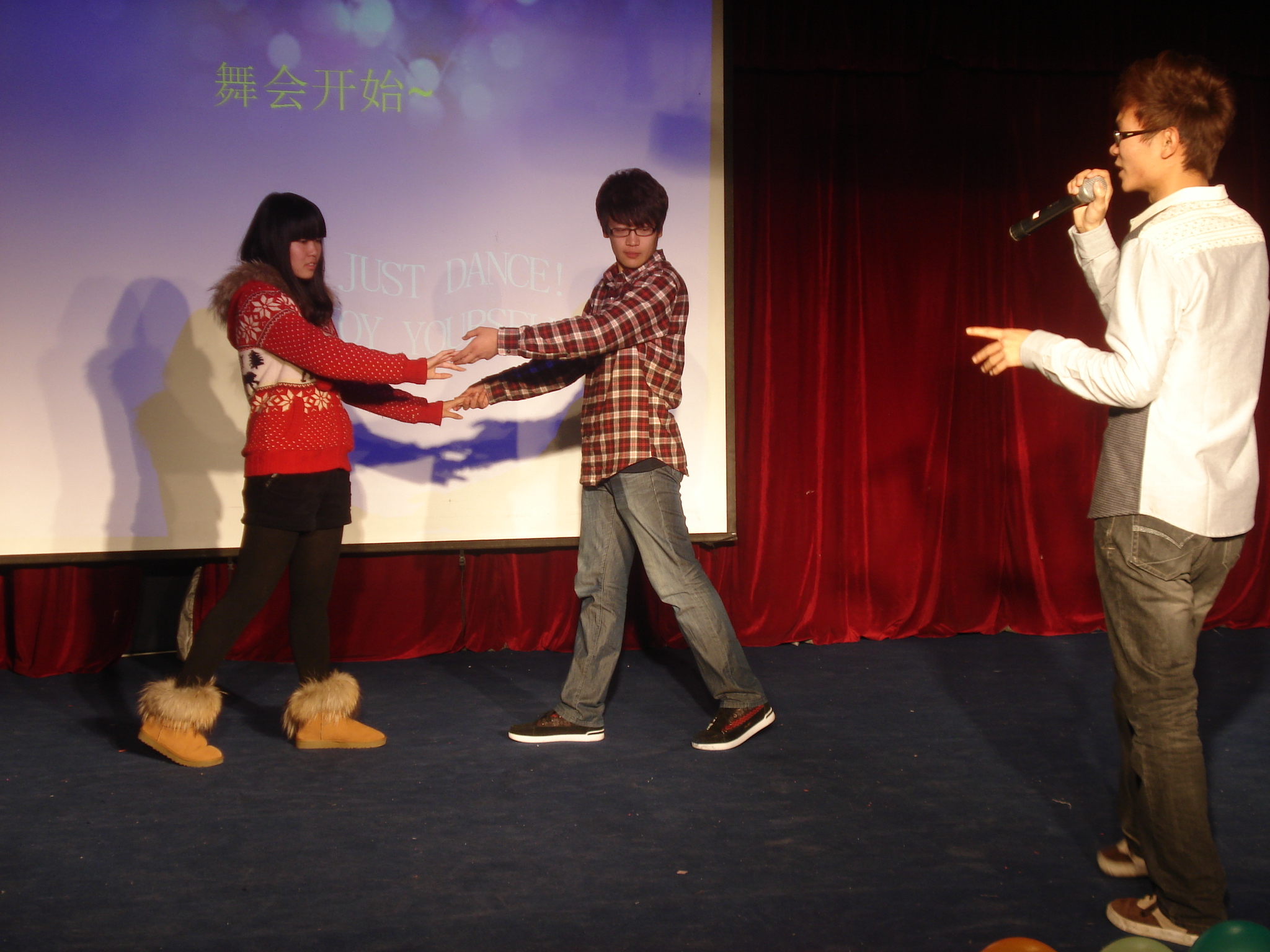 舞会随着街舞协会带来的开场热身舞拉开了帷幕,现场气氛瞬间被点燃。激情未减,优雅的交谊舞步出现在“炫舞课堂”中,由交谊舞协会现场教授交谊舞,带动了全场观众的参与,在场的同学牵起自己的舞伴跳起了优美的交谊舞。舞会中途,还加入了”抢麦”“踩气球”等精彩的游戏,再一次把舞会气氛推向了高潮。随后,一曲曲舞曲有序展开,节奏强烈鲜明,把握着舞动的脉搏,飞扬着青春的热情。最终,全场同学手拉手,在兔子舞的旋律中结束了舞会。