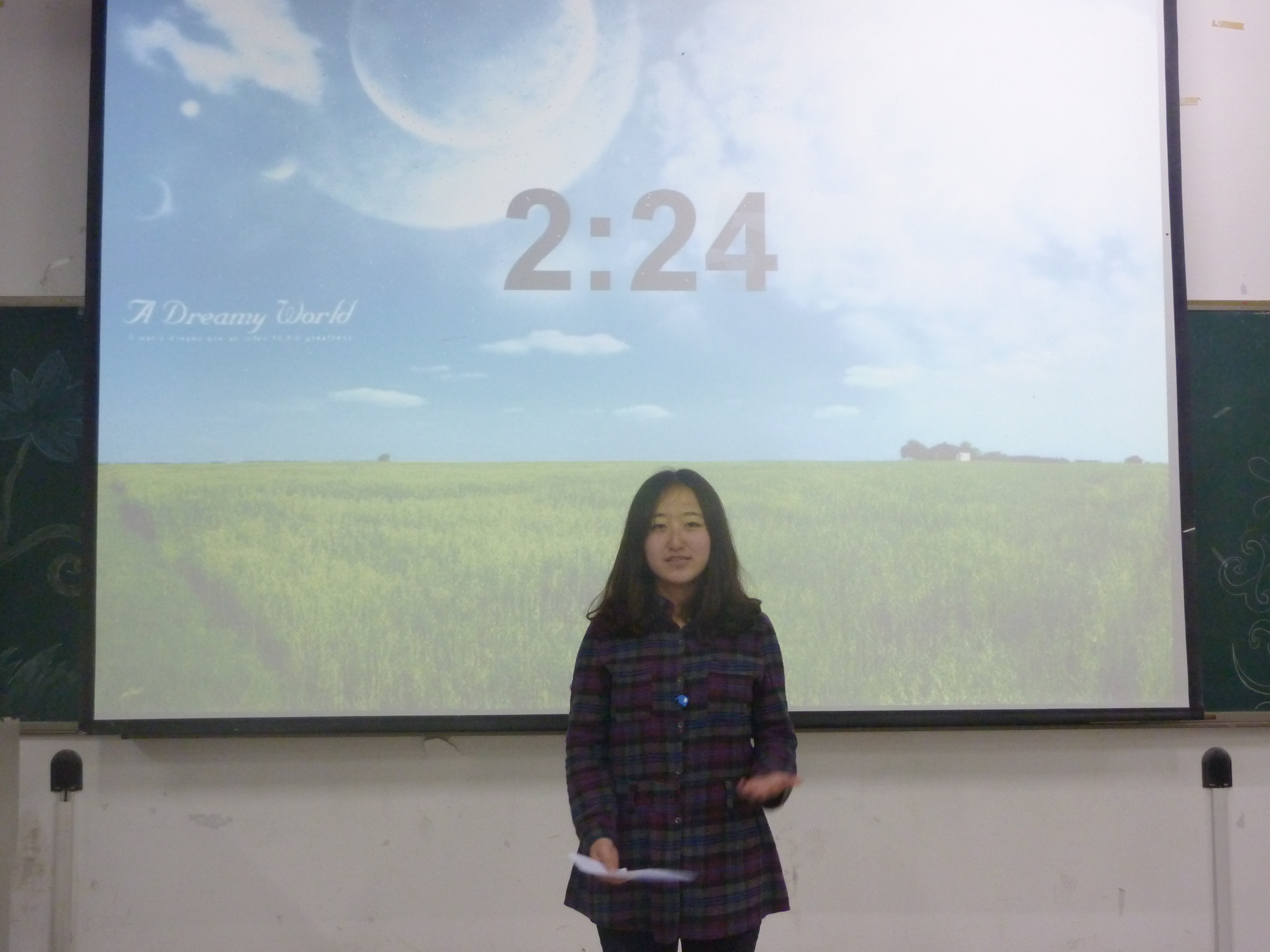 本次比赛共有12位选手进入决赛,分有备演讲、即兴演讲、评委提问三个环节。演讲时各选手慷慨激昂地抒发着自己对“态度”的看法,或引用名人名言及名人事例,或从自己的经历来分析,或以议论方式分点论证“态度造就人生”贯穿于生活学习的方方面面。各选手的激情演讲一方面表达了自己的态度,另一方面也激励着在场的每一位观众以积极的态度来对待生活。即兴讲演通过图片展示让选手们发表个人看法,更是锻炼其应变能力及口语表达能力,最后的环节则由评委提问选手回答,让评委更好地了解选手的能力与水平及其态度。演讲结束后,外教Michael进行了点评。