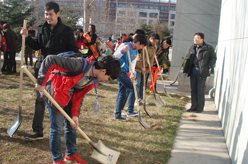 4月2日,外语公司员工党支部和青年志愿者协会开展“绿化环境·美化校园”植树活动。(通讯员:邹丹妮 高雪)